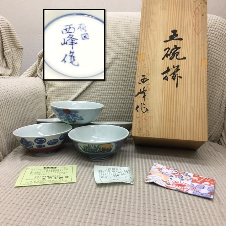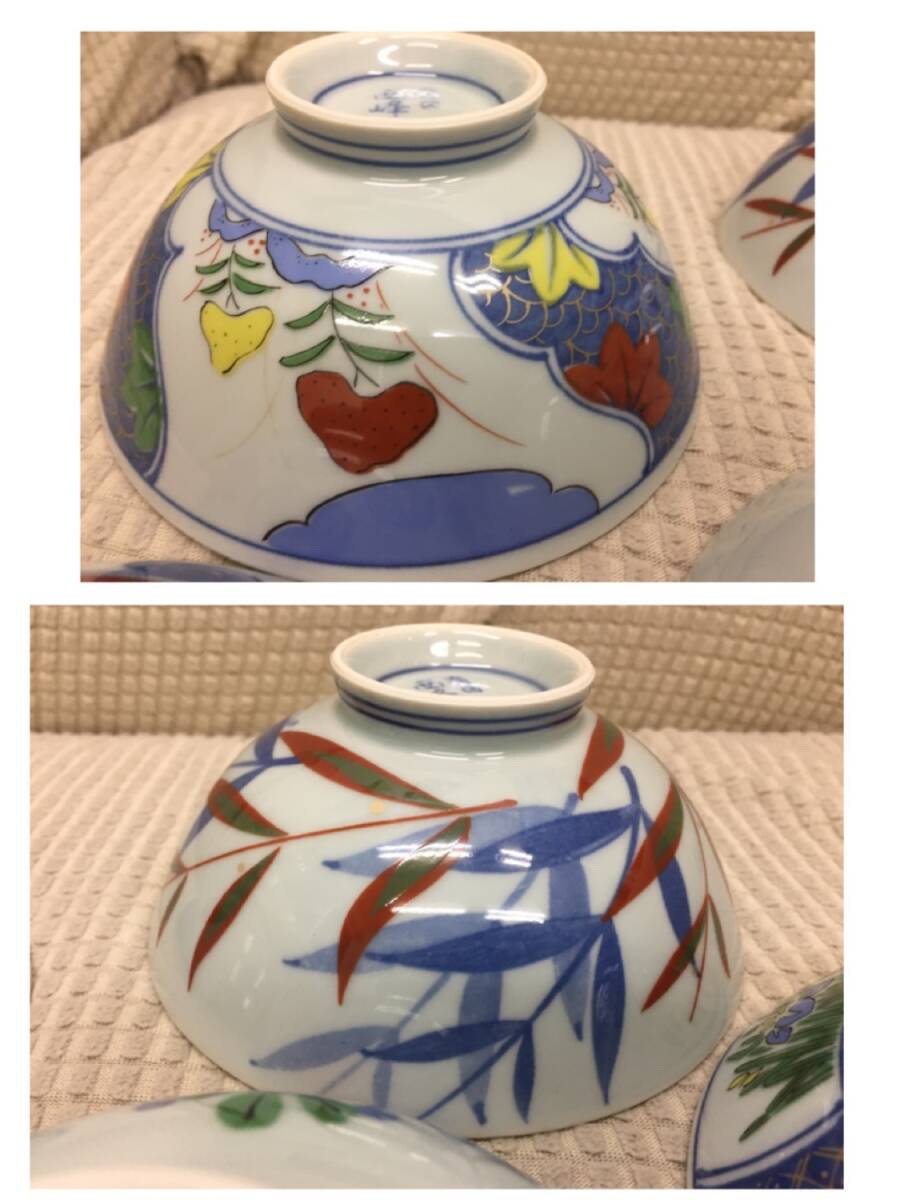 ◎サイズ 高さ:約5.5cm 口径:約11.7cm お碗5個セットで重量:約763g ※1個:約152g前後 箱込み総重量:約1301g ※多少誤差は生じると思います。 -------------- ◎状態 擦れ・傷・汚れ・経年劣化:目立つもの特に無し ・長期保管品のため簡単に清掃しました 画像1にあるものが全てです。 未使用のように見えましたが 長期保管のため 断定出来ないので、念のため 未使用に近い中古と お考え下さい。 -------------- 長期保管品のため、 ご利用になる前に今一度 洗ってからご利用ください。 使用不可というほどの状態ではあり ませんが、あくまでも長期に 渡る保管品という事をご了承ください。