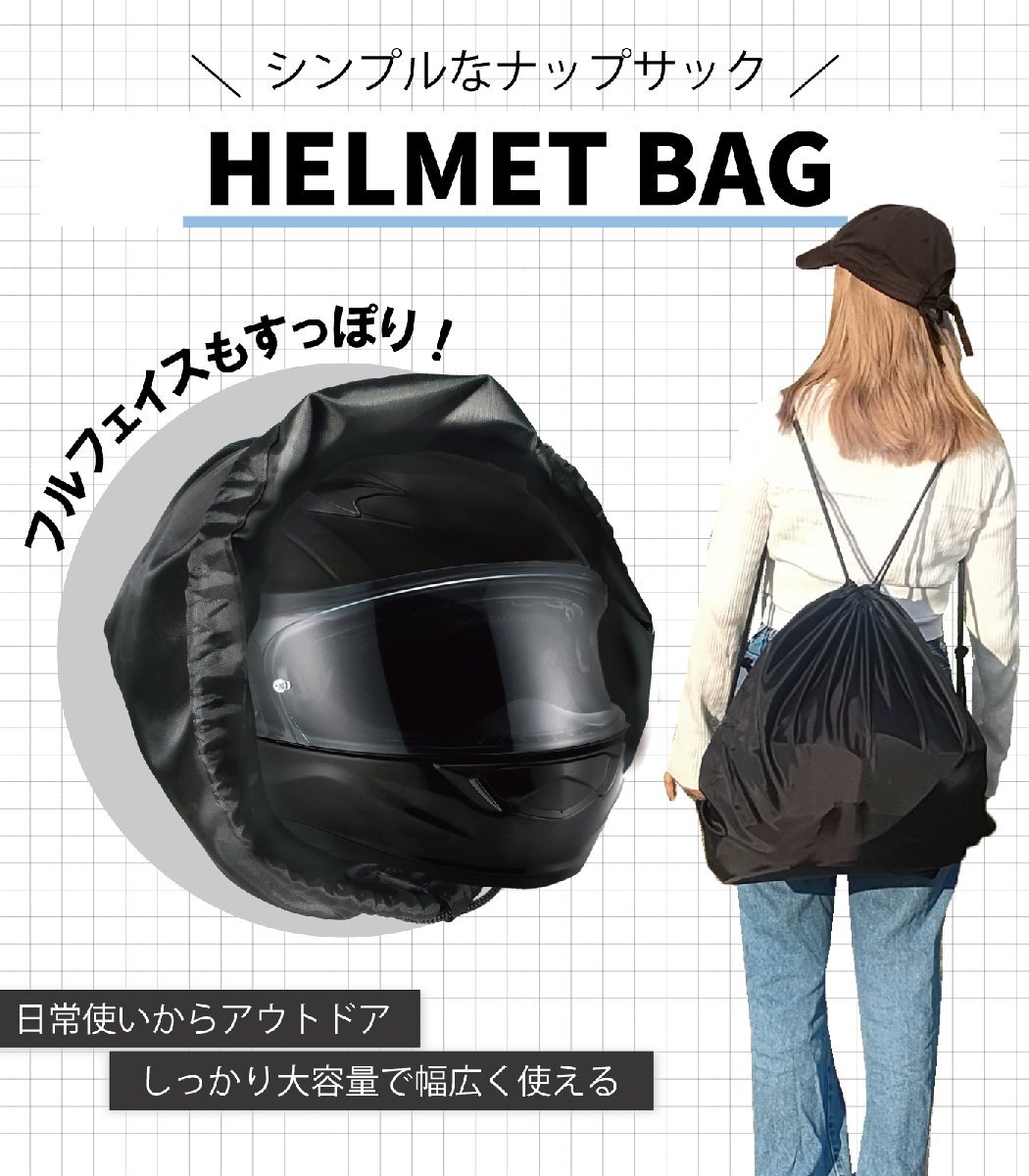 ・ヘルメットバッグ:バイク用ヘルメットを収納・持ち運びできる便利なバッグ。軽量設計でツーリングや通勤にも最適。