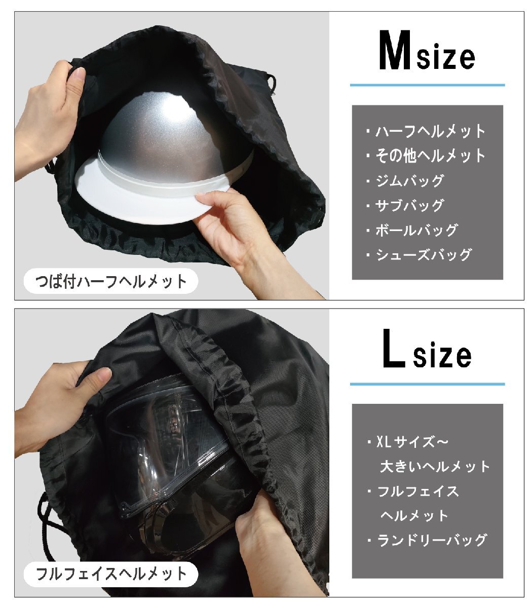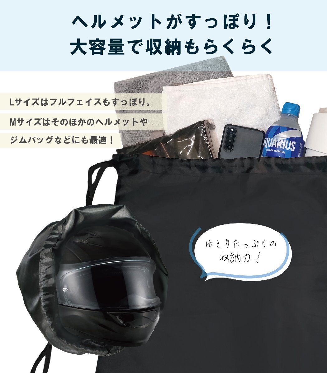 ・フルフェイス対応(Lサイズ):Lサイズはフルフェイスヘルメットも余裕で収納可能。グローブやインナーも一緒に入る大容量タイプ。