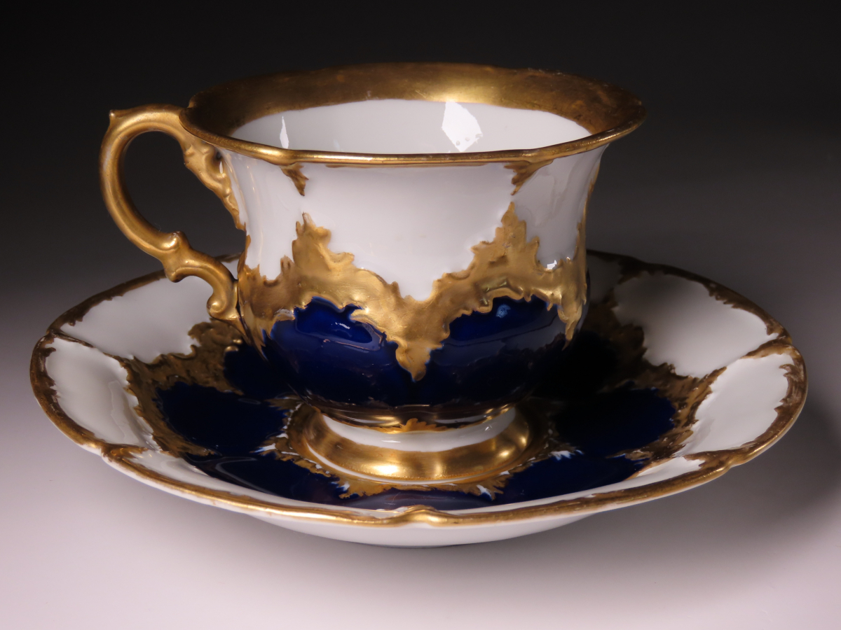 【ONE'S】19世紀 MEISSEN オールドマイセン ボタン剣 Bフォーム グランツゴールド コバルト カップ&ソーサー 西洋美術 ② | |||