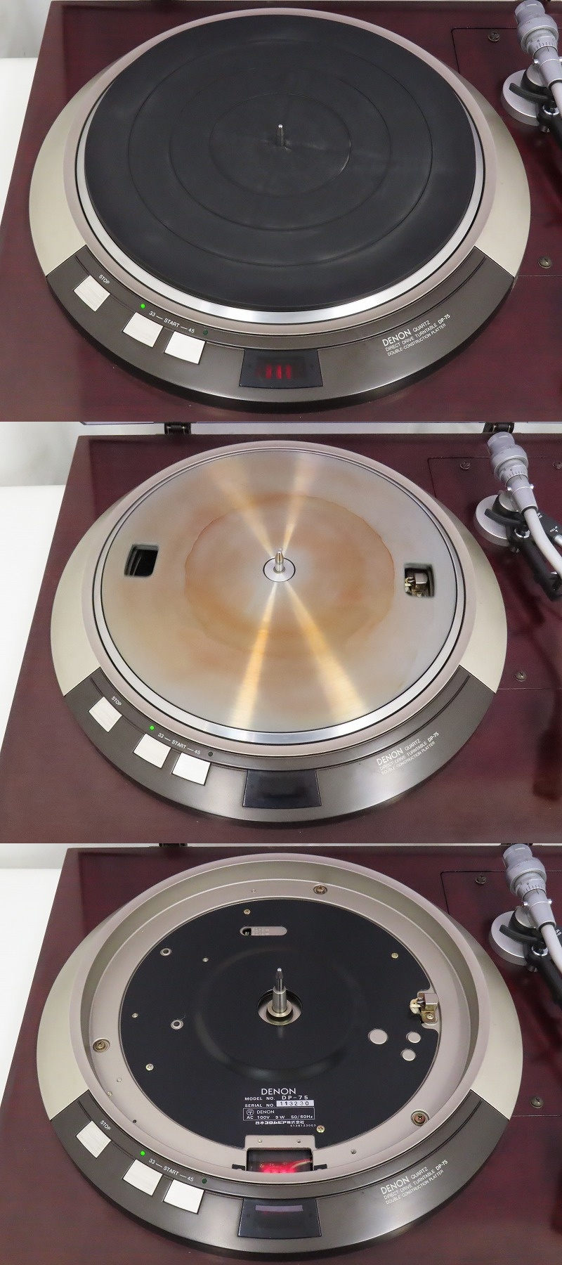 ■メーカー : DENON ■型番 : DP-75/DK-110 ■外径寸法 : W550×H185×D470mm ■重量 : 19.6kg ※弊社実測の為、多少の誤差はご了承下さい。 ※DA-309 トーンアーム付きでの出品となります。 ※DL-103 MC型カートリッジは針が曲がっており使用できない為、おまけとして付属させて頂きます。 【商品の状態 当店での確認内容】 動作確認をしたところ、回転速度制御ができず回転が速く音声出力が確認出来ません。 ※上記により【ジャンク商品】としての出品となります。 「商品の状態」に関しましては当方主観の目安となります。外観などは中古品で個人差もありますので詳細は画像にてご判断ください。 画像にて不明な点はご質問下さい。 出品商品は画像のものですべてになります。画像に写っているもの以外は付属いたしません。 ※注意※ のシステム上、送料表記が送料未定となっておりますが、送料に関しては全て有償となりますので下記を参照下さい。 【送料 全国一律 7,200 円 沖縄、離島は別途お見積り】 ※ダストカバーなどの破損を防ぐため、本体と分けて2個口で発送いたします。 ※送料がお得になるサービスです(下取りシステムのご案内です) ストア決済利用時にクレジットカードやPayPay残高/PayPayクレジットを利用の方は留意点がございますのでこちらを参照上ご利用ください。 当ストアでは商品を安全にお届け出来るよう提携運送会社と協議の上、発泡緩衝材や強度段ボールの使用等 運送会社が指定する梱包方法や資材を採用しております。 より安全にお届け出来るよう商品仕様により梱包サイズが大きくなる場合や個口数が増える事がございます。 【当ストアオークションルールを入札前に必ずご確認ください。】 【落札後の取引手順】 ・落札後は取引ナビにて、必要事項をご入力後、送信ください。 取引終了後48時間(土、日は除く)以内に入力をお願い致します。 ※ご連絡が頂けない場合は落札者様都合でのキャンセルとさせていただきます。 ・落札代金(商品代金+消費税+送料)の入金をお願い致します。 ※大型商品の場合は送料確定後の決済となる為取引ナビを入力頂き、当ストアより送料のご案内が来るまでお待ちください。(土曜、日曜、祝日の場合は翌営業日より順次ご案内いたします) ・お支払い方法はクレジットカード/PayPay残高/PayPayクレジット/PayPay銀行/ゆうちょ銀行のみです。 ※商品代金引換(代引き)のお取り扱いはしておりません。 ※領収証の発行が必要な方はご連絡ください。 ※銀行振込の際の振込手数料はご負担願います。 ・入金確認後に出荷手配を致します。 (原則入金確認後3営業日以内に発送いたしますが、大型や重量のある製品はお時間をいただく場合もございます。) ・発送は当店指定の運送会社の元払いのみでの発送となります。 ※他の運送会社、送料代引き等は致しかねます。 ※落札者様ご自身での運送会社の手配いただく事も可能ですが荷物事故の責任の所在の問題上、梱包は致しかねます。 ※店頭にお越し頂き手渡しも可能(福岡市早良区)です。ご希望の方はご落札後にご連絡下さい。 ・大型/重量物商品の送料につきましては商品の特性上、荷降ろし状況等により送料が大きく前後し運送業者に別途見積りが必要な為、早めのお問い合わせにてお見積り上、入札をお願い致します。 【初期不良の保証について】 ・商品到着後の初期動作不良、また配送中の事故による破損、不具合が有る場合は、商品発送後10日以内に当ストアまでご連絡ください。当ストアでは修理での対応を優先させて頂きますが、修理不可の場合は全額返金させて頂きます。 (商品代金+消費税+送料のお支払い頂いた金額となります) 【初期不良の保証の対象外について】 次の場合は保証の対象外となりますのご留意ください ・ジャンク商品、現状商品、難あり商品での出品商品。 ※難あり商品に関しましては動作確認時に一部動作不良が確認された商品になり、記載している動作確認以外にも、動作不良がある可能性もございます。こちらに関しましても保証対象外となりますことをご理解ください。 ・年代物のオーディオなどで、当店にてわからない範囲で部品が交換されている場合 ・楽器類の特殊機材(マイクロスコープ等)での確認までは行っておりません。気になる方は事前にご質問いただくか、入札をお控えください。 ※初期不良に関しましては【商品の状態】に記載のもの、またそれによって起因する動作不良は対象外です。 ※商品発送後10日を過ぎてのご連絡は対応が出来ませんので、商品が到着しましたらお早めに確認をお願い致します。 【メーカー保証の加入・継承】 ・未使用品、展示品やメーカー保証期間が残っている商品に関しまして、メーカー保証の加入、継承が必要な方は、落札後取引ナビ内にて当ストアにお知らせください。商品発送までにご連絡いただけない場合、メーカー保証の手続きを承れない場合があります。 【評価について】 ・評価不要の場合、必ず取引ナビの「要望