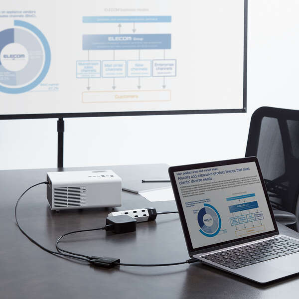 | ●HDMIコネクター搭載のディスプレイなどに映像を出力できる変換アダプター。 USB Type-C(ポート搭載パソコンなどの映像信号を、HDMIコネクター搭載 ディスプレイなどに映像を出力することができ、画面複製と画面拡張に対応 | |