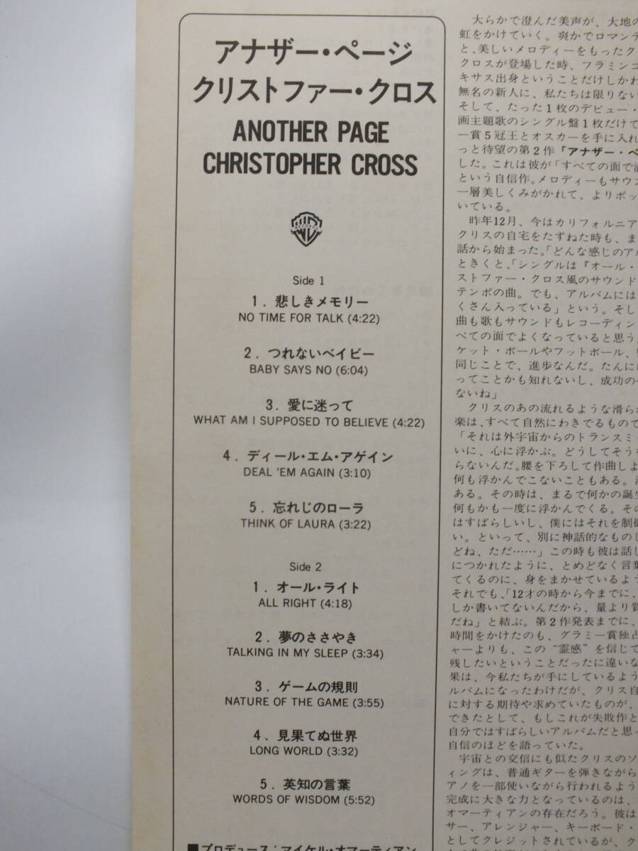 P 11286 クリストファー・クロス CHRIISTOPHER CROSS ANOTHER PAGE 【8商品以上同梱で送料無料】2506 | |||||