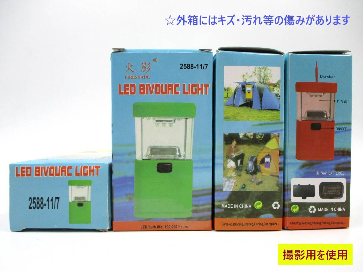 内容物確認・撮影・点灯確認の為、 外箱を開封し、2個両方に電池を入れて、 短時間通電点灯させています。 [点灯確認/2025.6.5実施] 全体的に、商品本体にキズ・汚れが多く、 おそらく製造時のものと思われる 指紋汚れも見られます。 (参考:画像8・9、他) 他、電池ボックスの開閉や 電池の出し入れに難がある物 (力を込めすぎると バネ部分等が 破損する可能性があります)・ 当方が把握していないヒビ割れなどの 破損がある物が混ざっている 可能性があります。 以上の点より「訳あり」扱いとして、 安価にて出品いたします。 以下の商品説明をよくご覧になってから、 ご検討をお願い致します。 神経質な方、完品をご希望の方は、 御入札をご遠慮ください。 【商品内容】 LED BIVOUAC LIGHT 2個セット (*「BIVOUAC」=野宿・野営を指す単語) ・商品のボディカラーは、全て「黒」です ・単三電池 3本 使用 (別売) ・外箱サイズ: 約 12.8×7×5(cm) *商品本体も ほぼ同サイズ ・重量:1個あたり 約100g ・外箱に 「LED bulb life(LED電球寿命) : 100,000 hours」 表記あり ・中国製 ・吊り下げフック付き(参考:画像3) ・小型ながら、11個のLED電球で 周囲を明るく照らします(参考:画像4・5) ・防水・防塵などの機能は ありません *一部の画像には撮影用を使用しています 画像10は 今回お送りするお品を撮影しています ご了承下さい *状態・セット内容は画像にてご確認ください *実際の商品の色味とは異なる場合があります *サイズ対比として、 一般的なコーヒーボトル小缶と一緒に 撮影した画像をあげています 参考にどうぞ(参考:画像2) 【状態等】 ・内容物確認・撮影・点灯確認の為、 外箱を開封し、2個両方に電池を入れて、 短時間通電点灯させています。 ・海外製につき、商品本体に 製造上のキズ・汚れ・指紋の付着・ 透明部分に気泡や割れ等の傷み・不備、 作りの粗さ・弱さがある場合があります。 また、外箱には、キズ・汚れ・角の凹みや潰れ・ 色焼け・部分的な破れ等の傷みがあります。 美品をご希望の方はご遠慮ください。 (参考:画像8・9、他) ・長期保存品につき、内部への埃の入り込み等、 御容赦下さい。 ・短時間の通電点灯確認は致しましたが、 長時間の使用による 不良・不備が見つかる可能性があります。 また当方の把握していない部分的な破損等が ある場合があります。 当方ではそういった不良・不備のサポートは 一切いたしません。 ご了承ください。 以上の点より「訳あり」扱いとして 安価にて出品いたします。 ご承知をいただける方のみ、 ノークレーム・ノーリターンにて、 ご検討下さい。 【補足】 基本的には「郵便受けへのお届け」と なりますが、 郵便受け・宅配ボックス等に入らない場合は 対面または持ち戻り(不在通知票投函) になります。 *参考/ 「ゆうパケットプラス専用箱」サイズ 約24cm×17cm×7cm | ||