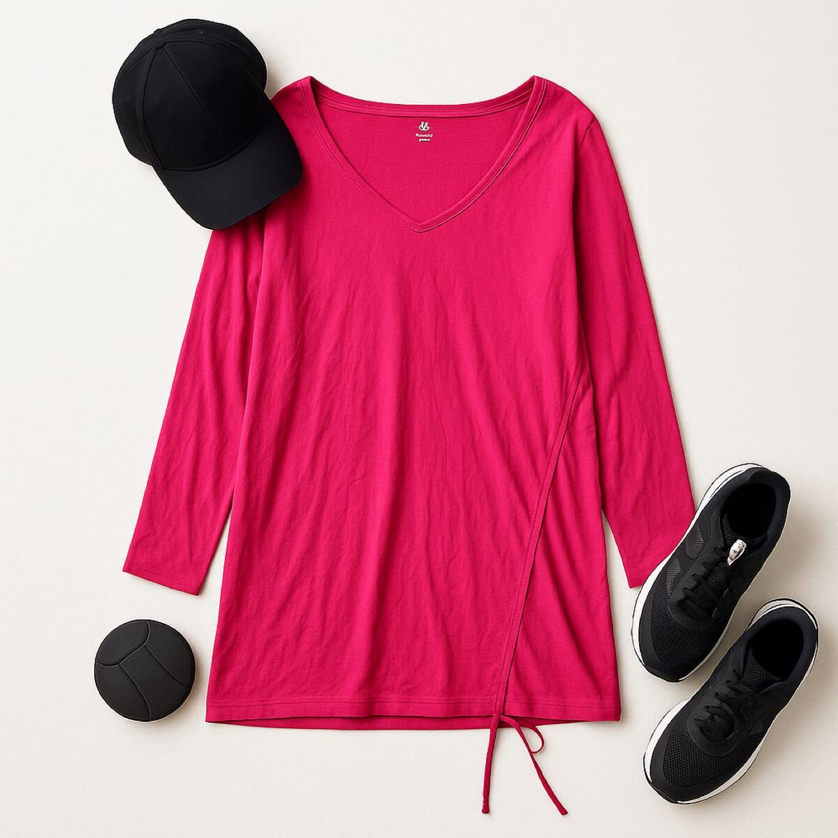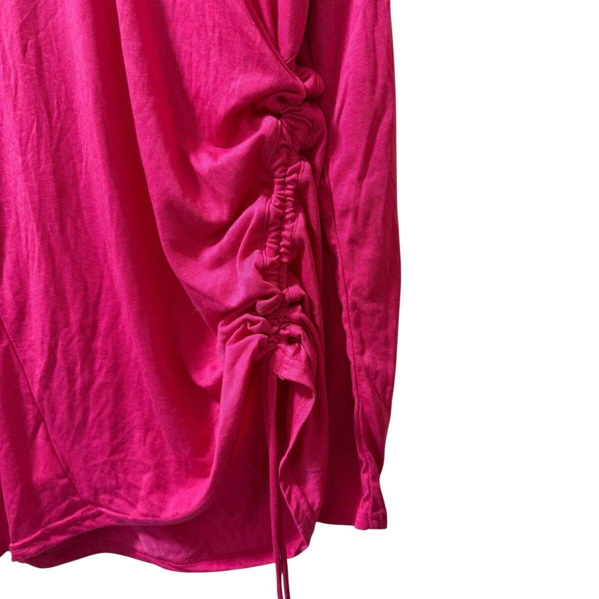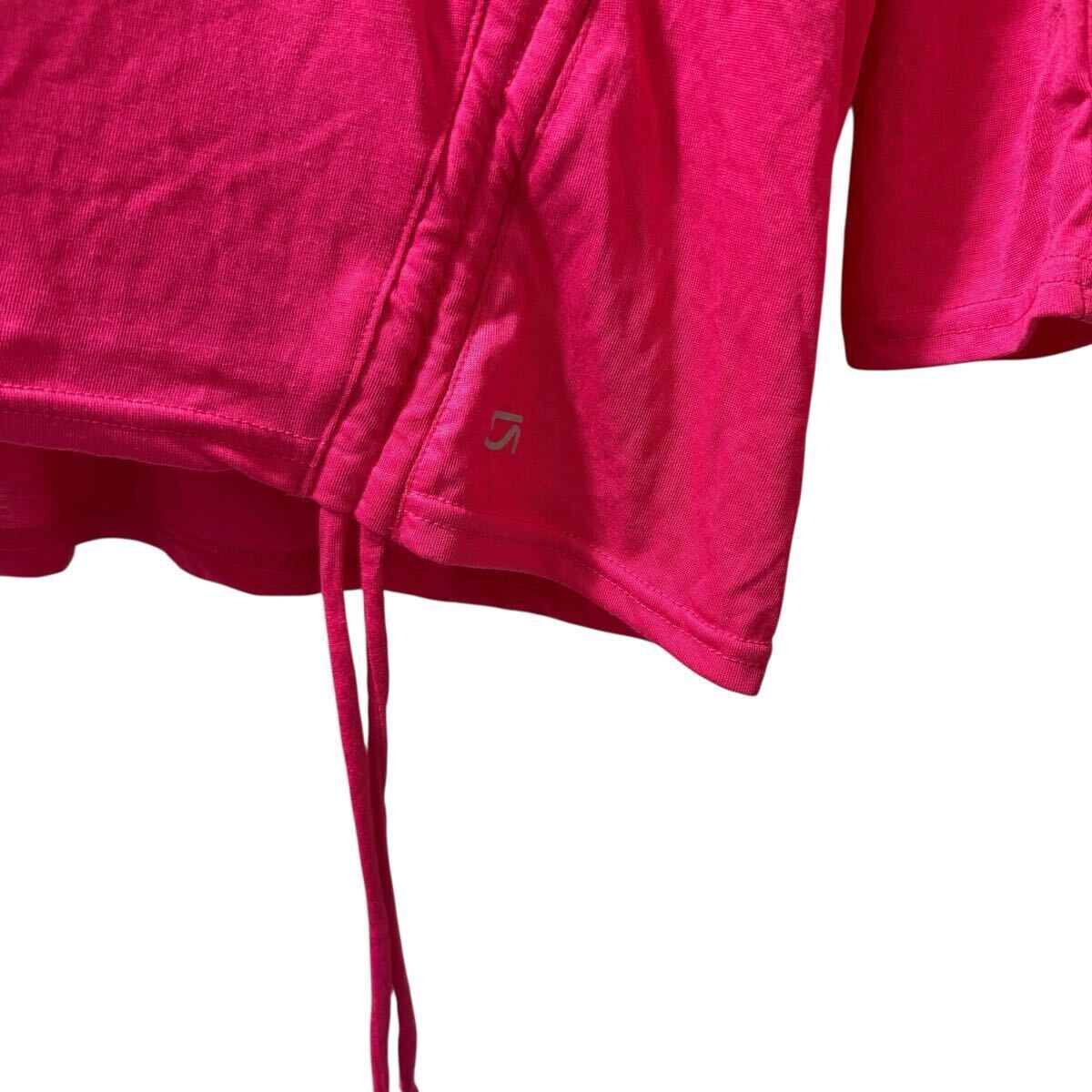 鮮やかなピンクカラーとVネックデザインが特徴で、1枚で華やかな印象に。サイドのドローコードがアクセントになっており、カジュアルにもスポーティにも着こなせる万能アイテムです。