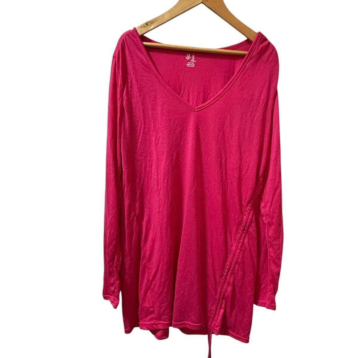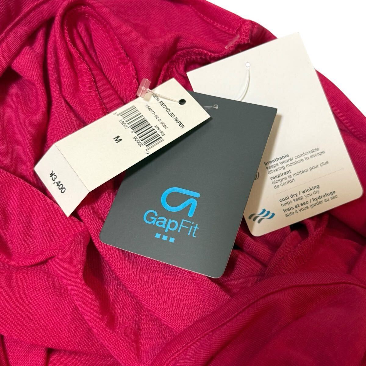 100円a5【新品・GAP】鮮やかピンク◎Vネック長袖トップス スポーティMIX 新品 M