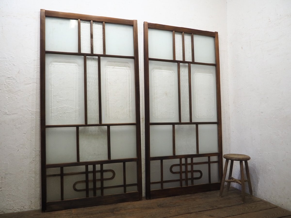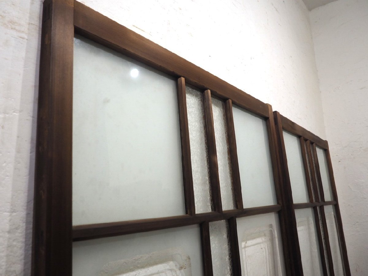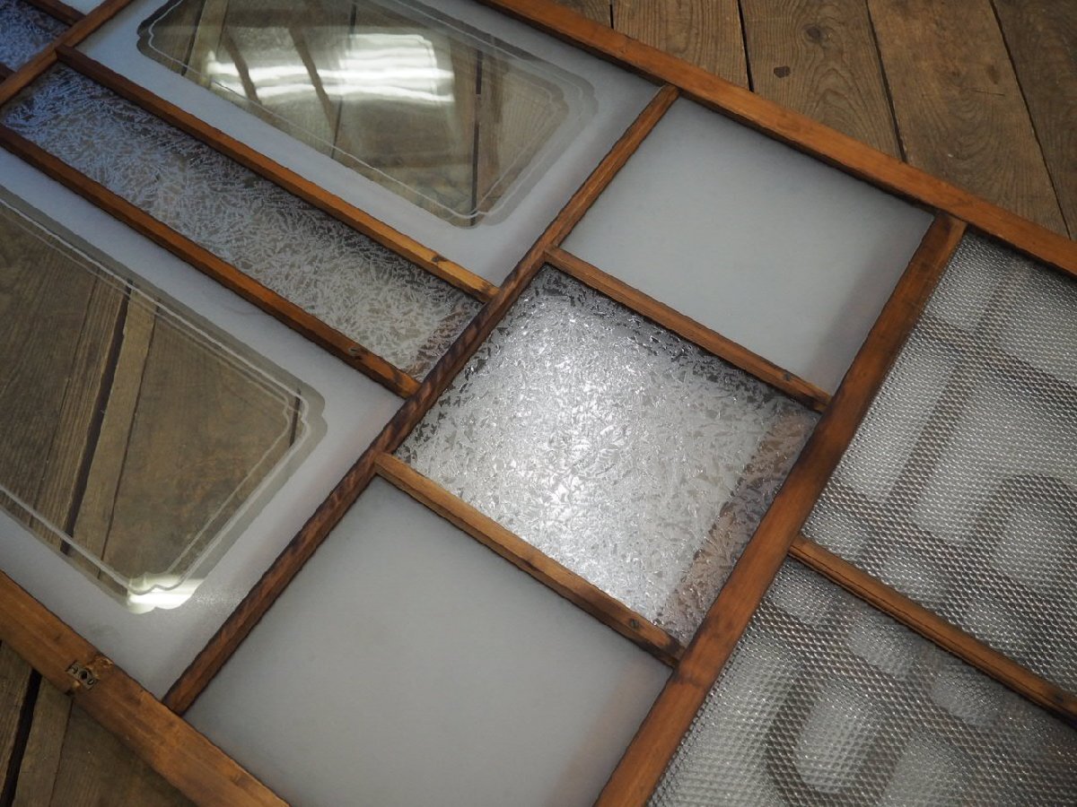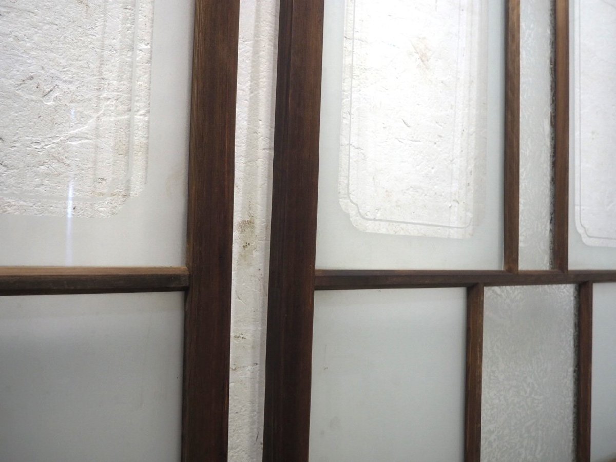 商品情報 | ■商品詳細■ アンティークの大きい木枠引き戸、2枚セットです。 長年使い込まれた味わいのある品です。 貴重な葉ガラス入りです。 ガラスは、葉ガラスとデザインガラス、 サンドブラスト加工の透明ガラスと曇りガラスを使用しています。 一般のご家庭はもちろん、レトロな店舗什器にもお勧めです。 経年の傷や欠け、染みや古い補修、木枠に欠けやヒビ、 加工跡の小穴やガラスに落としきれない汚れ等がありますが、使用には問題ありません。 ガラスにヒビや割れはありません。 古い物とご理解いただければ幸いです。 ◆別カテゴリーにて、同じデザインの品(T0351~T0356)を出品していますので まとめてご希望の場合は、ストア内検索で上記の管理番号を検索して頂ければと思います。 売買済みの場合はご了承下さい。 ご不明な点などありましたら、質問欄にてお願いします。 ■サイズ■ 全体(最大値) (H 183cm×W 97,5cm×D 3,3cm)×2枚 竪框 4cm 鴨居に入る部分 1,5cm 多少の誤差はご了承下さい。 ドライバー1人での配達になりますので、場合(通路が狭い等)によっては 荷運びのお手伝いをお願いすることがあります。 商品は玄関先までの配達になります。 |