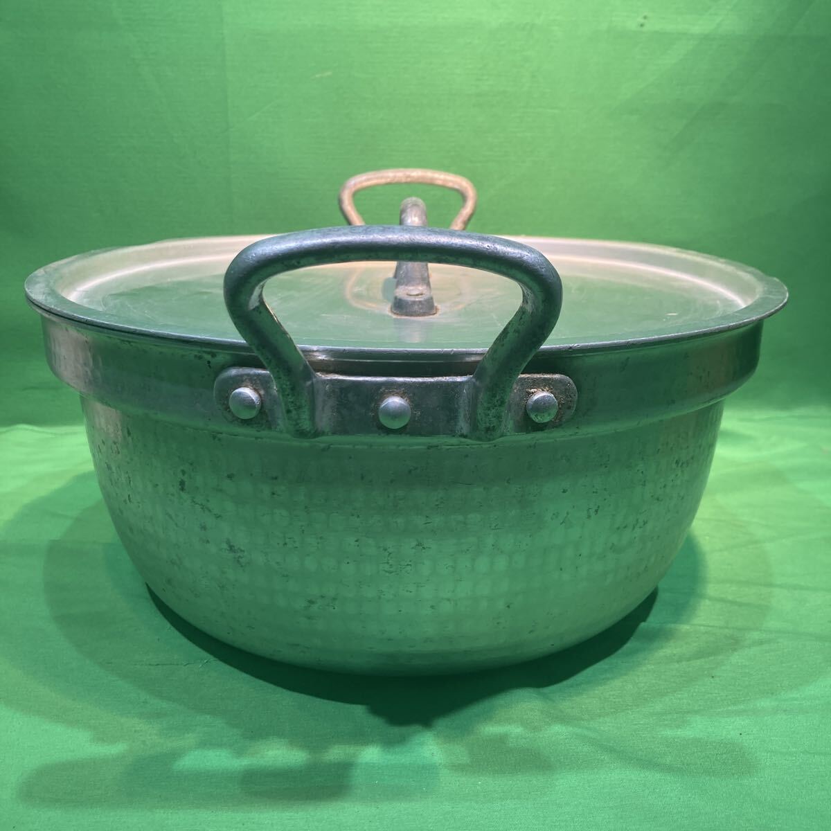 業務用 両手鍋 アルミ鍋 ゆきひら鍋 蓋付 調理器具 厨房用品 飲食店 中古品 現状品 内寸30㎝位