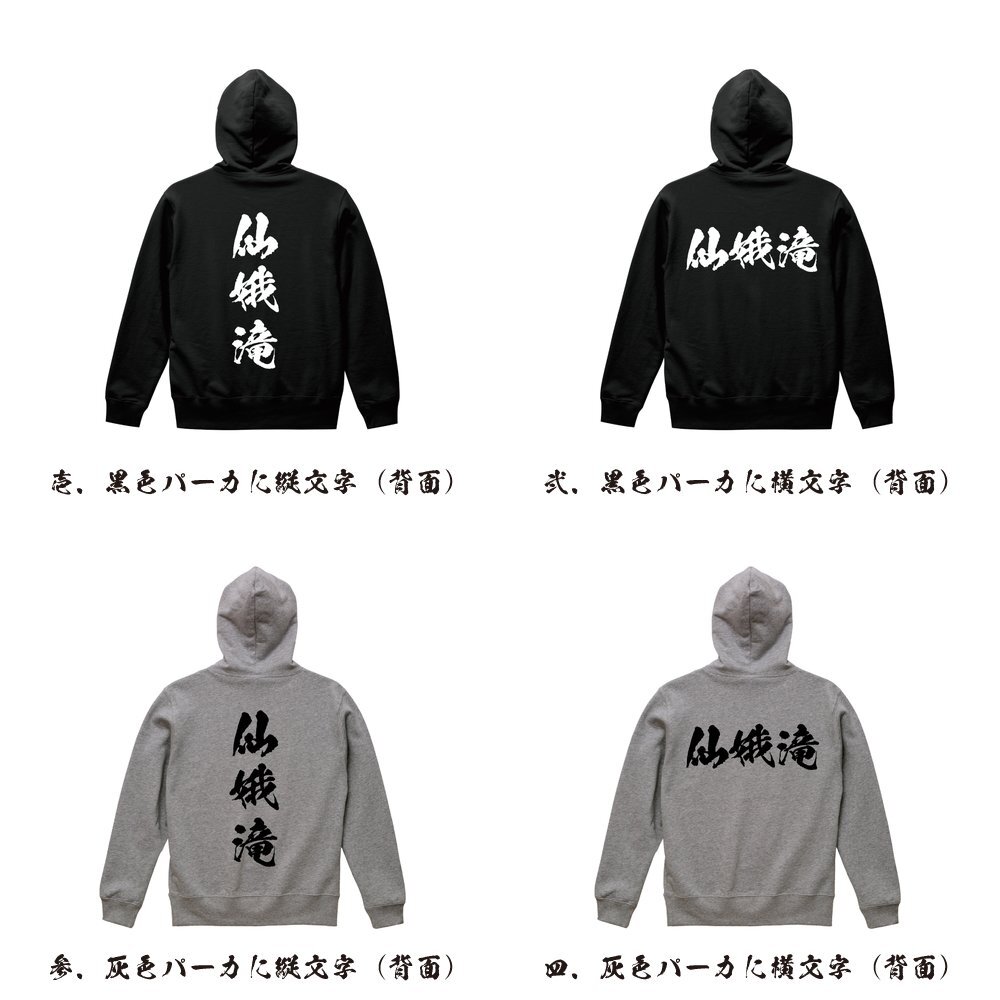 商品名 | 書道家が書く プリント オリジナル フルジップ パーカ | 他連絡先 | 1.TEL ⇒ 0120-931-578 【専門スタッフ応対】 2.E-MAIL ⇒ workpro@cronos.ocn.ne.jp 3.FAX ⇒ 059-253-3578 |