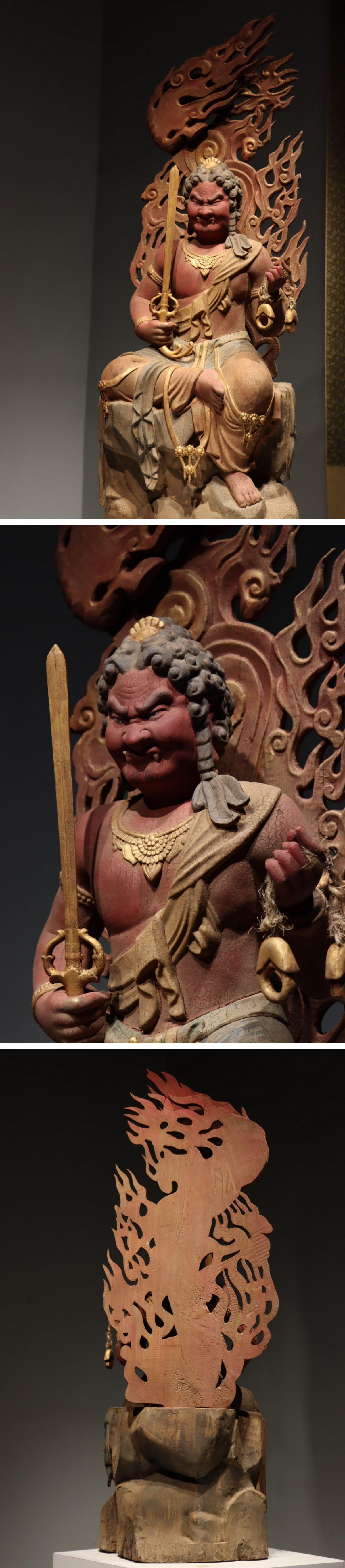 【清】某有名オークション購入 倣古佛 楠木色絵 巨大不動明王造像 大量注文可能 古置物 古擺件 古美術 時代コレクション7L9-HU
