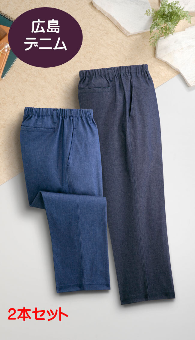 滑らかでゆったりとしたソフトなはき心地です ウエスト総ゴム仕様 長財布もすっぽりと入る便利な後ろポケット付き ベルトループ付き 薄手に仕上げてあるのでデニムでもゴワ付き感はなく滑らかな仕上がりになっています。 *素 材 綿100% *サイズ 股下60cm サイズ3L *カラー ブルー系、ネイビー系の同サイズ2色組 *仕 様 左右ポケット2、右後ポケット1、ウエスト総ゴム前ファスナー、ベルトループ有 *生産国 日本 | ||||