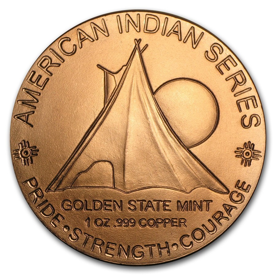 商品名 : (新品) アメリカ「インディアン族長・馬」純銅 赤金 1常衡オンス メダル 品位 : 99.9%の純銅