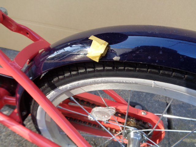 ※ハンドルが右にきられた状態で入っています。そのまま箱から出し、ハンドルを反時計回りに戻して頂きますと正面(進行方向)を向きます。
