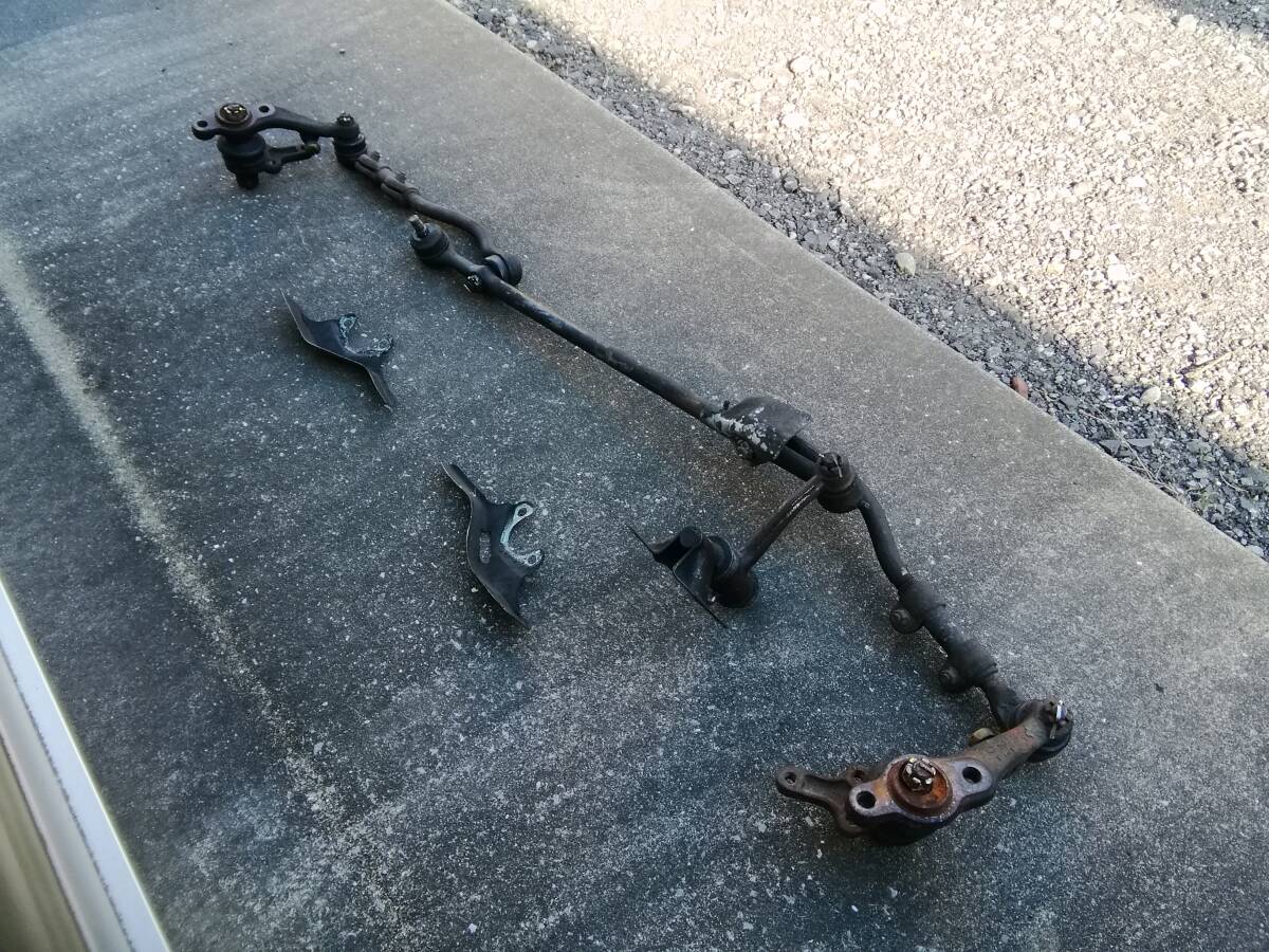 ケンメリブタケツのステアリングリンケージです。ナックル、ボールジョイント、アイドラアームまでついたセットです。各部ガタはありませんが、アイドラアームだけブッシュ交換が必要のようです。レストア用に予備部品にいかがでしょうか?ノークレームノーリターンでお願い致します。発送はゆうパック着払いです。