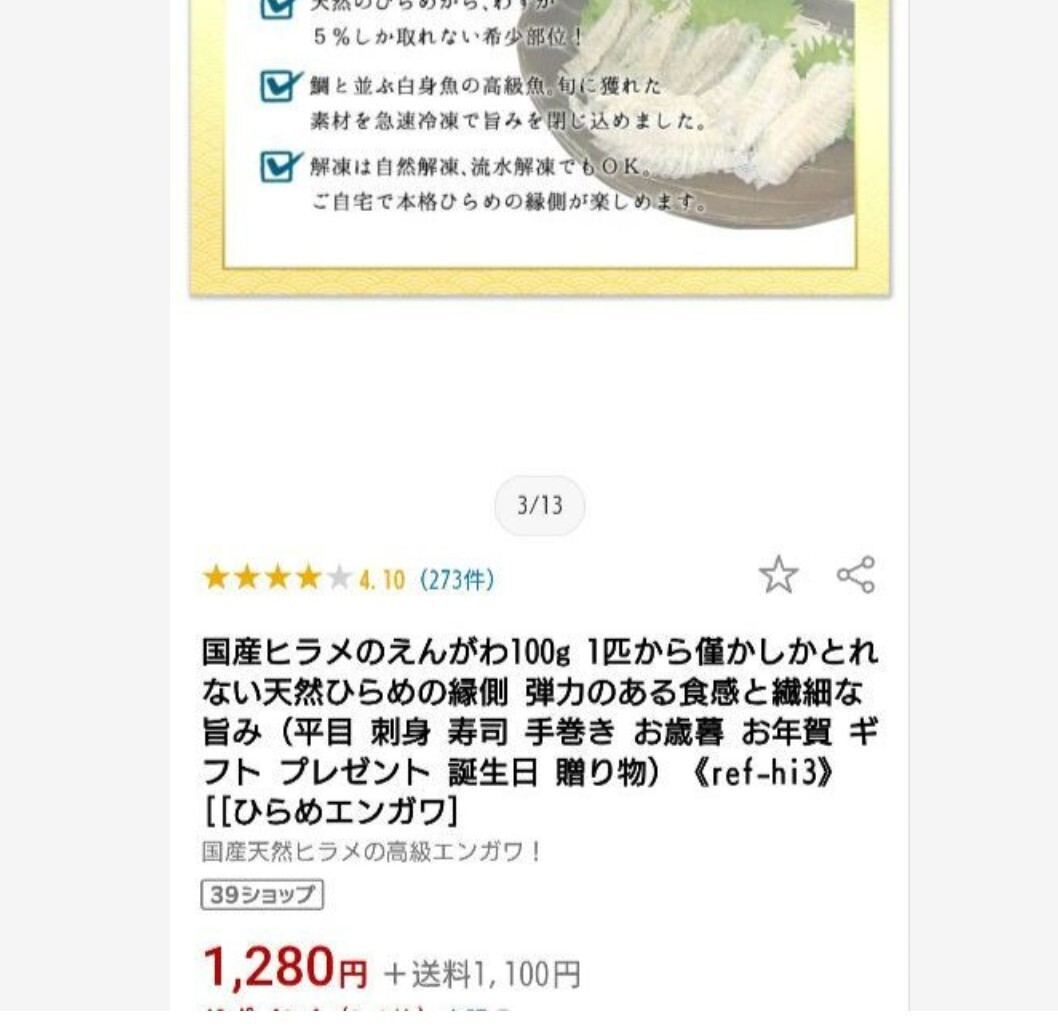国産 天然ひらめえんがわ 500g| 出价者 | 信用 | 价格 | 时间 |