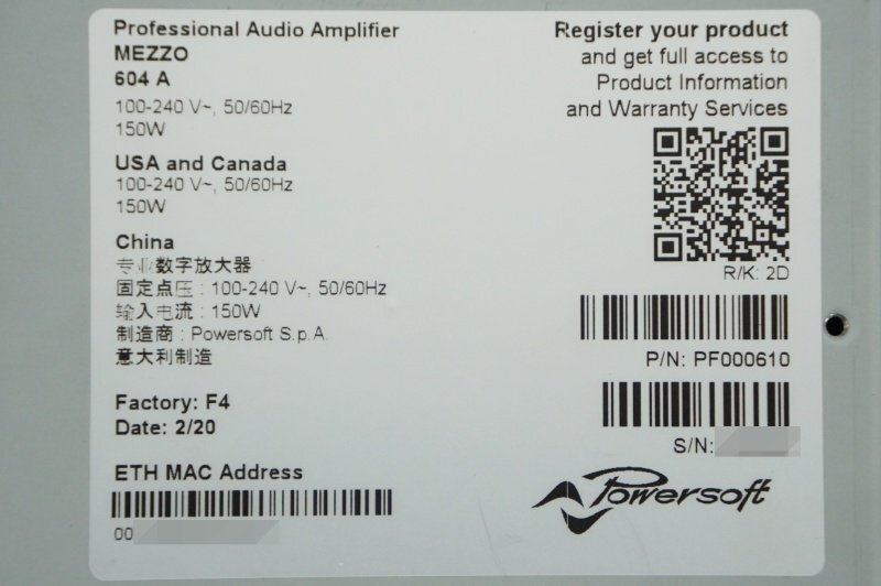 Powersoft DSP搭載4チャンネル コンパクトパワーアンプ▲Mezzo 604 A 中古 ★☆送料無料☆★ | ||