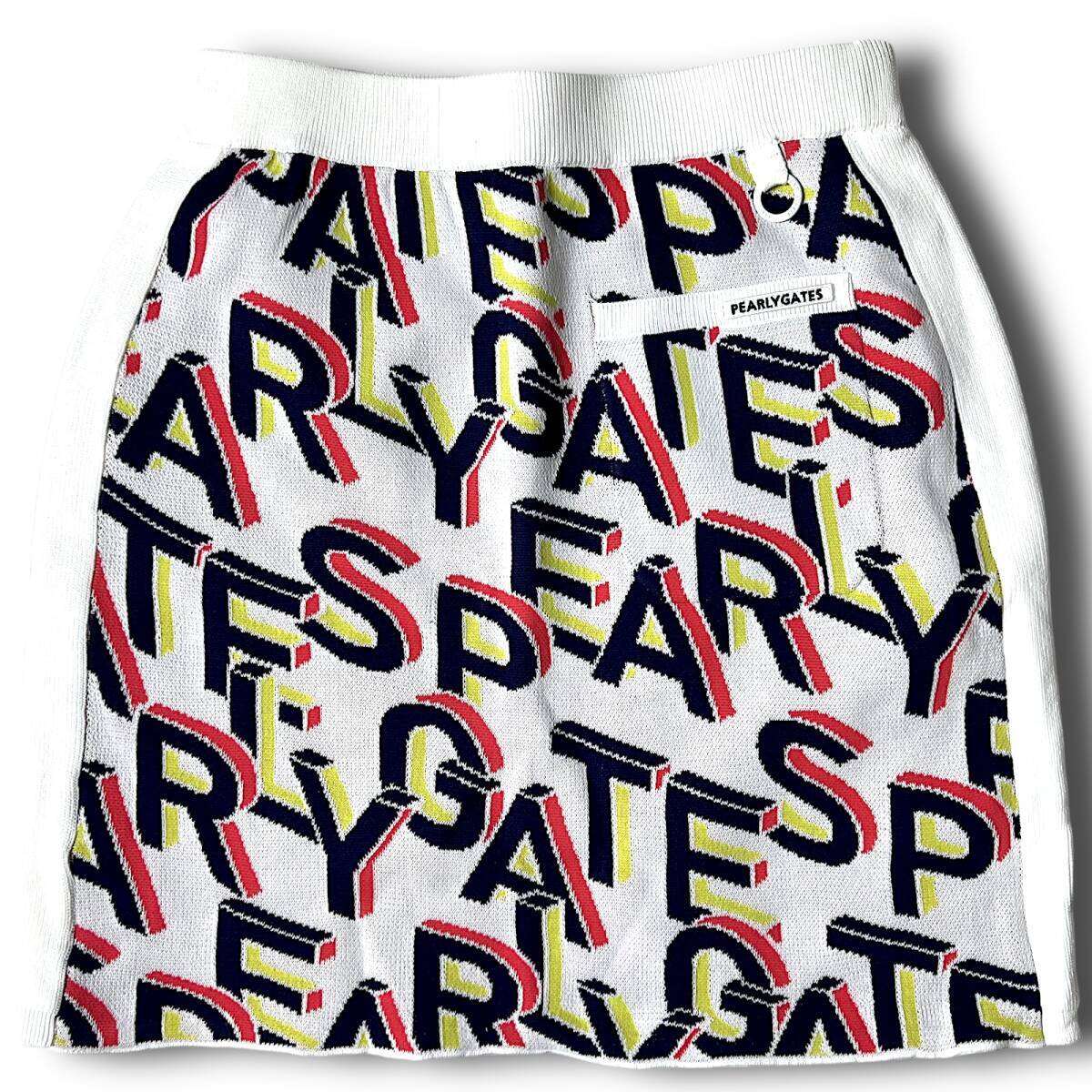 タイトル 新品 PEARLY GATES パーリーゲイツ ビッグロゴ総柄 ニットスカート LAYER素材 遮熱 透け防止 UVカット 総柄 3Dビッグロゴ ストレッチ ゴルフスカート ゴルフウェア レディース GOLF スポーツ レジャー ホワイト系