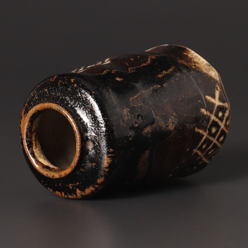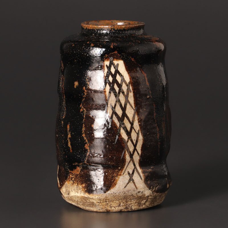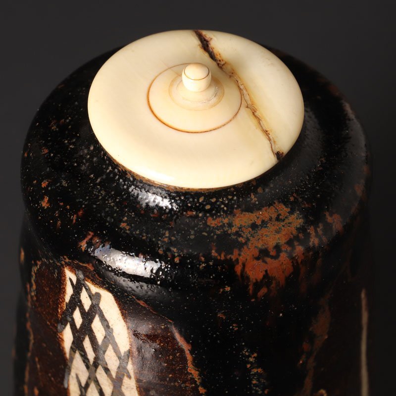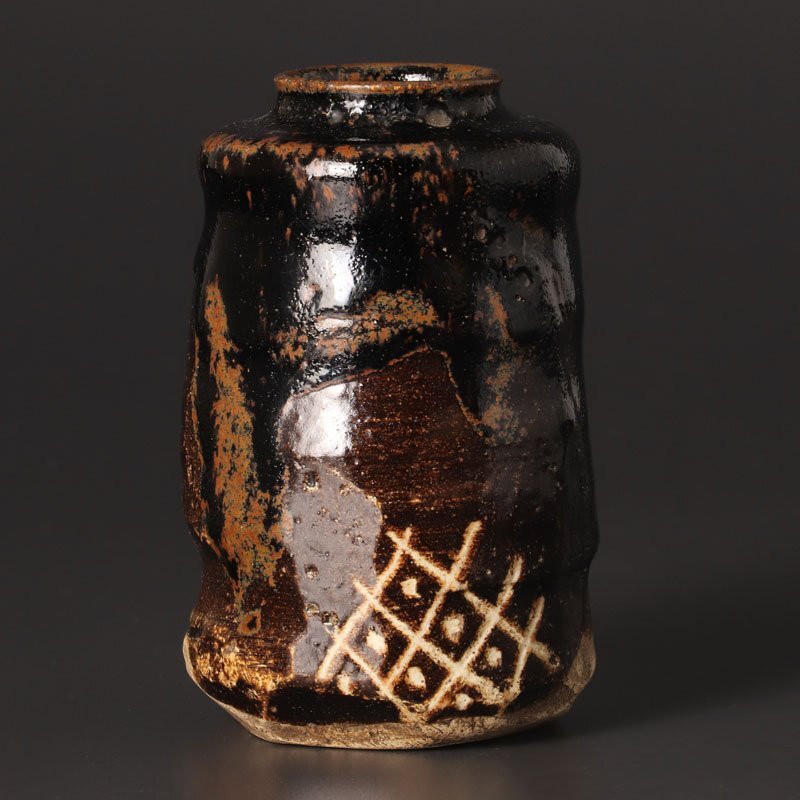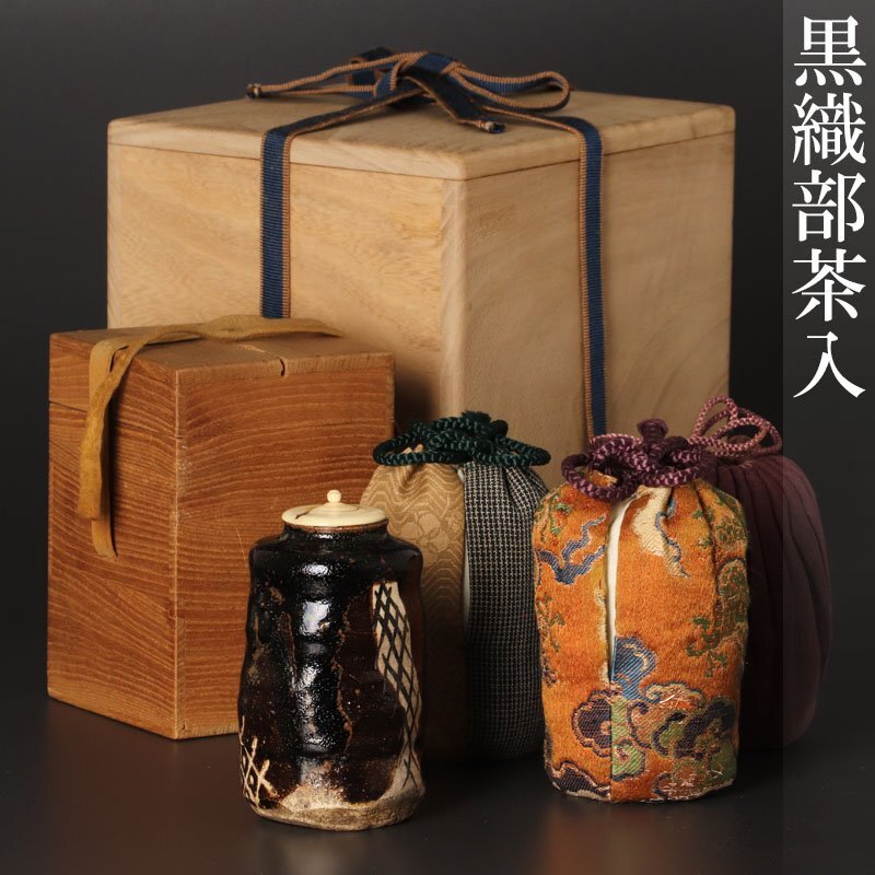 | 【古美味】江戸時代!黒織部茶入 茶道具 保証品 |