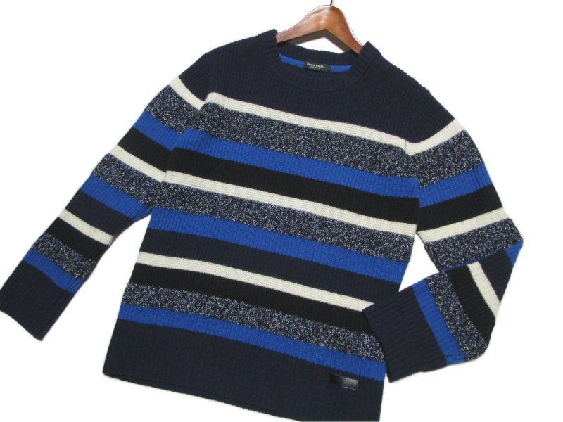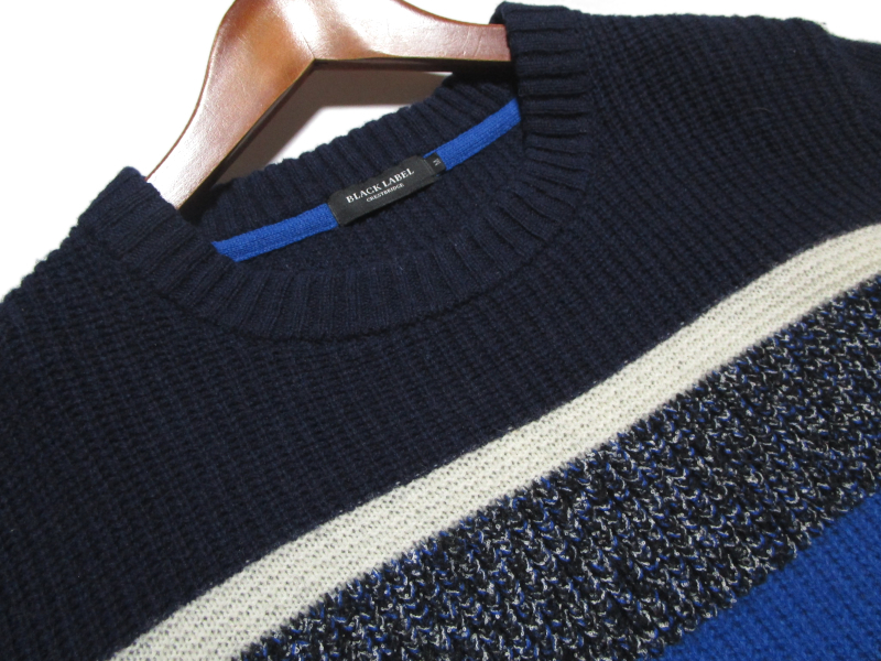 ブラックレーベル・クレストブリッジのニットです。 モヘヤブレンドのふわっとしたリブ編みのウールニットで、 切替編みのパネルボーダーが特徴的です。 色はネイビー系です。 当出品物は全て正規品です。ご安心下さい。 |