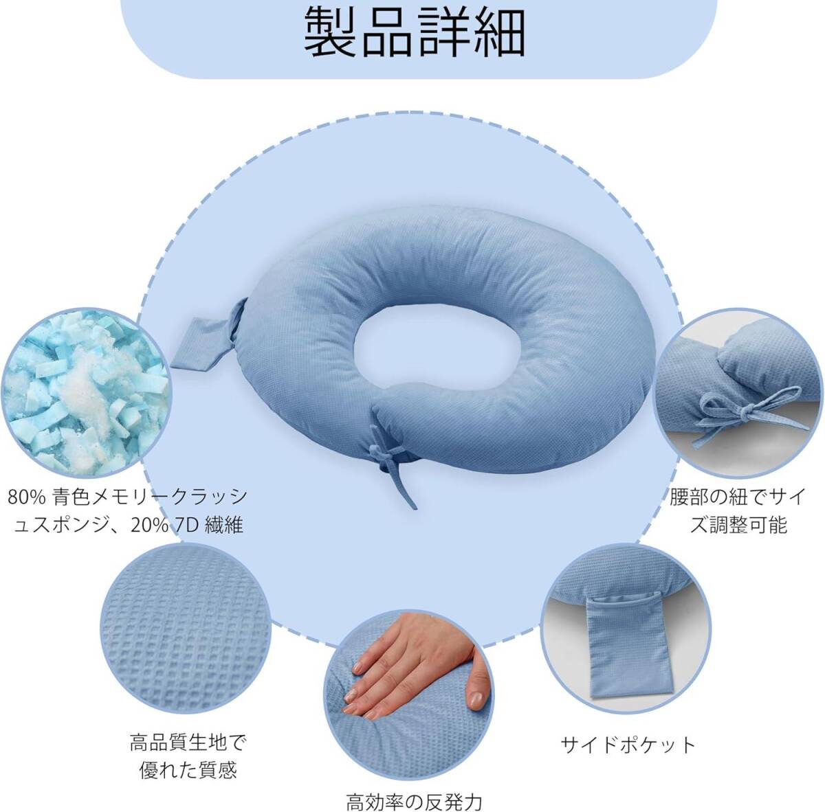 | 素材_中材 | 80%メモリースポンジ, 20% 7D繊維 |