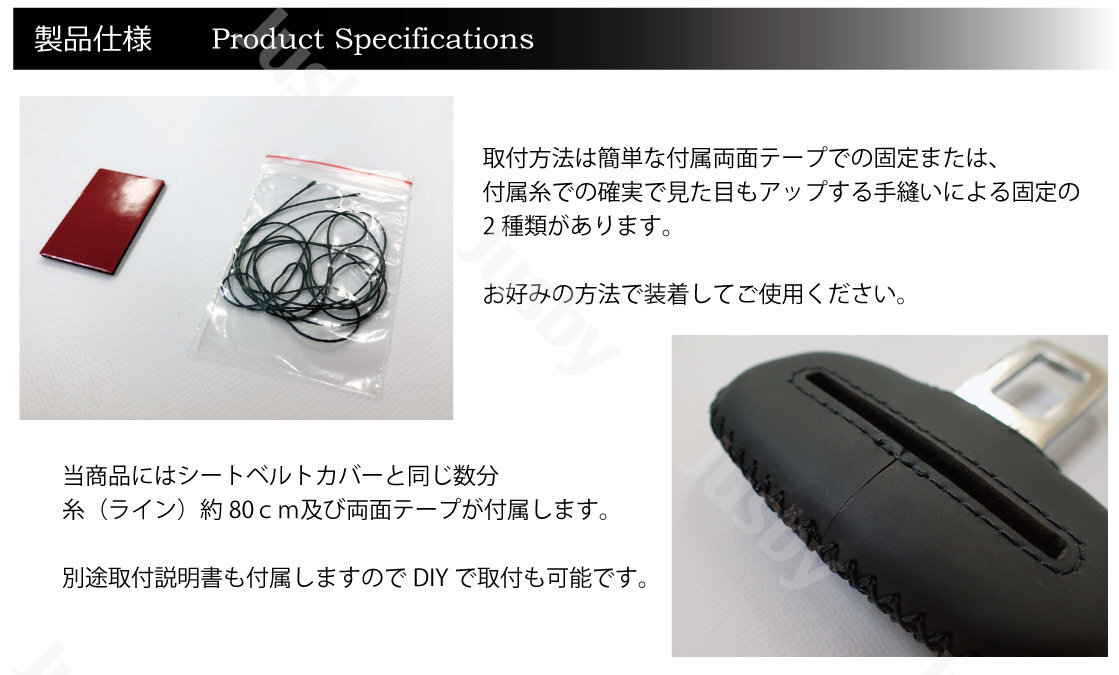 | ・車種専用本皮シートベルトカバー 2個 ・両面テープ 2個 ・糸(約80cm) 2本 ・説明書 |