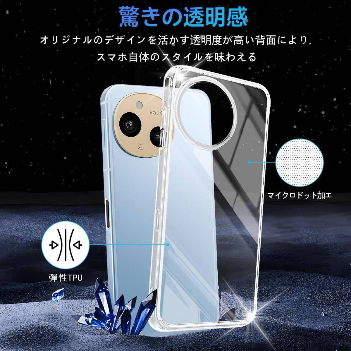 【優れた精度】AQUOS SENSE9 ケース 薄くて頑丈で、程よいグリップ感があり、できるだけスマートフォン本体のスリムさを極力損なわないように設計した透明背面ケースです。位置、及び全てのスピーカー、ポート、ボタンを精密に設計しており、充電、及びヘッドフォンで音楽を聴いても機能的な使用を妨げなく、携帯電話に負荷をかけなく、簡単に取り付けることができます。【完全透明・上質な透明感】 超精密な光透過分子を備えて、後ろの光透過率は 99% に達します。後ろのポ
