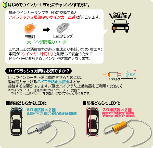 | ご注意 | ※こちらの商品は、電子部品で構成されたLEDバルブです。 電圧低下したバッテリーをお使いの車両や11V以下の 電圧では正常に動作しない場合がございますのでご注意ください。 ※取付前に仮付状態にて、点灯確認を行なってください。 ※サイズ、取付可否については画像記載の情報をご確認のうえ、お願い致します。 ※弊社は取り付けに関してのサポートはしておりませんのでご了承ください。 ご自身でお取り付けのご不安な方は近くの専門店へご相談下さい。 ※熱のこもる場所等、取付する場所によっては寿命が著しく短くなる場合がございます。 十分ご注意下さい。万が一お車に不具合が出た場合の補償は 致しかねますので、ご了承下さい。 ※取り付け方法、使用方法、車種等により、車検適合基準が変わります。 適合について弊社でサポート致しませんので、ご購入前に専門店にご相談下さい。 ※取付作業はお客様ご自身の責任にて行ってください。取付作業などで発生した事故、 損害について弊社はその一切の責任を負いかねます。 ※ハイフラ対策済みで無い場合、当ユニットを装着する事で ハイフラッシュ現象が起こります。対策済みで無い場合は 「ハイフラ対策ICリレー」又は「ハイフラ防止抵抗」を別途ご用意下さい。 |
