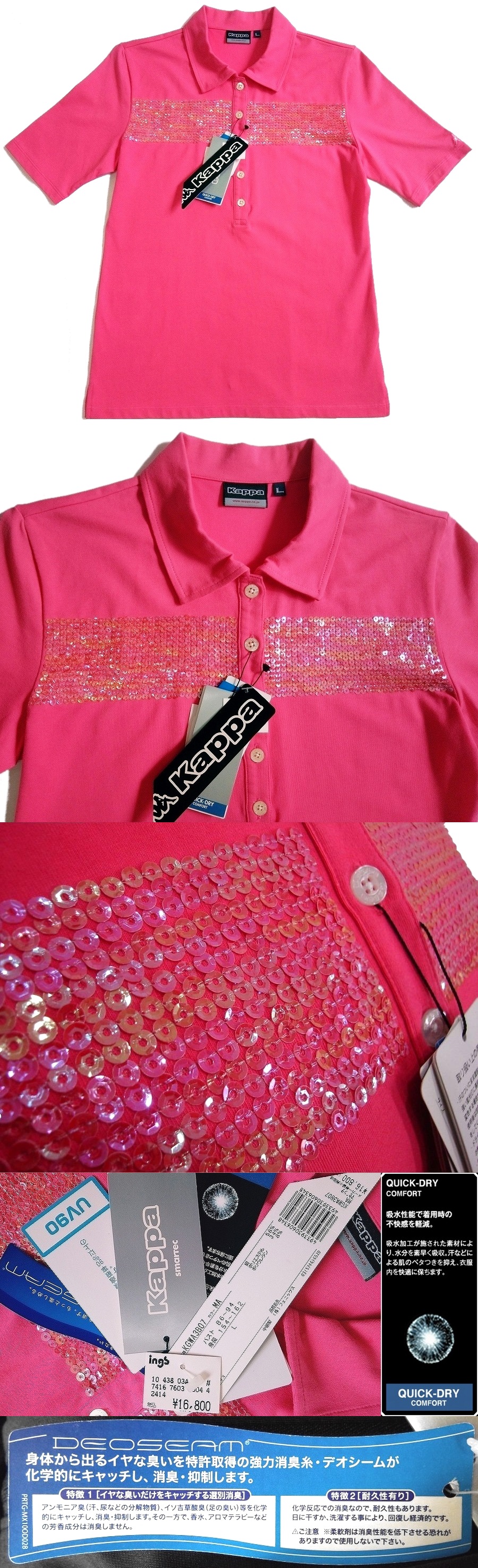 送料無料 未使用品 Kappa Golf 吸汗速乾 UV90 消臭 伸縮 カッパ ゴルフ スパンコール シャツ 定価16,800円/L | ![]() | |||||||||||||||||||||||||||||||||||