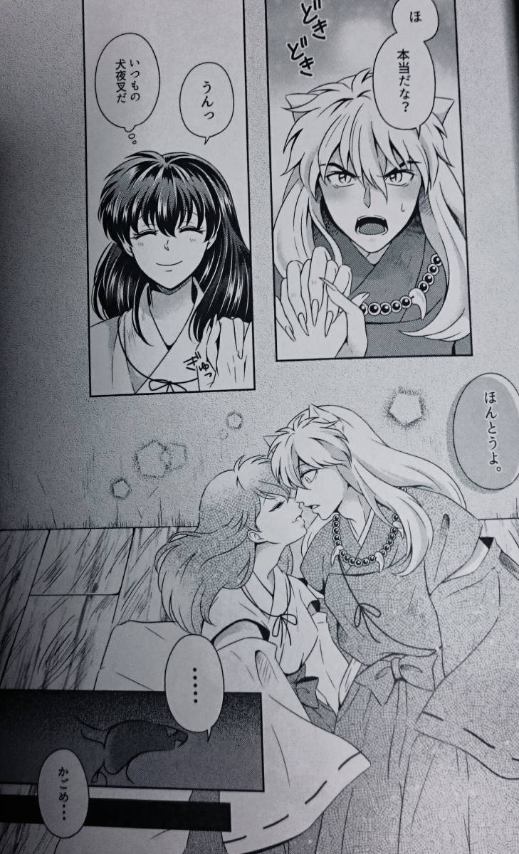 A5・32ページ(2017.1.29)べっこあめ。/画:べっ子。/★新婚1年目の犬夜叉とかごめ。犬夜叉は頻繁にかごめを求める。やんわりと拒むと淋しそうな犬夜叉の表情を見てしまうと、ほだされてしまうかごめだった。ロマンチックなスキンシップをしたいかごめは、お手製の首輪を犬夜叉に着けた。しかも、その首輪には言霊がかけられていた。「待て」〜「おすわり」に加えて「待て」をかごめに駆使されて、もはや犬夜叉は拷問状態に陥った。(女性的表現があります)☆カバーをかけて保存していますので比較的きれいな状態だと思いますが、人手に渡った品である事をご了承下さい。ノークレーム、ノーリターンでお願いします。発送は定形外180円かレターパックライト430円を予定しています。*同梱発送も承ります。