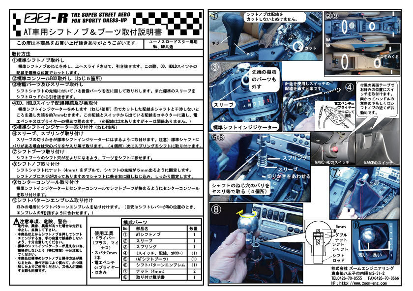 適合車種 | 1989年~2005年7月製造のマツダ(ユーノス)NA8C(1800cc)及び、NBロードスターのオートマチックトランスミッション車(AT) | |