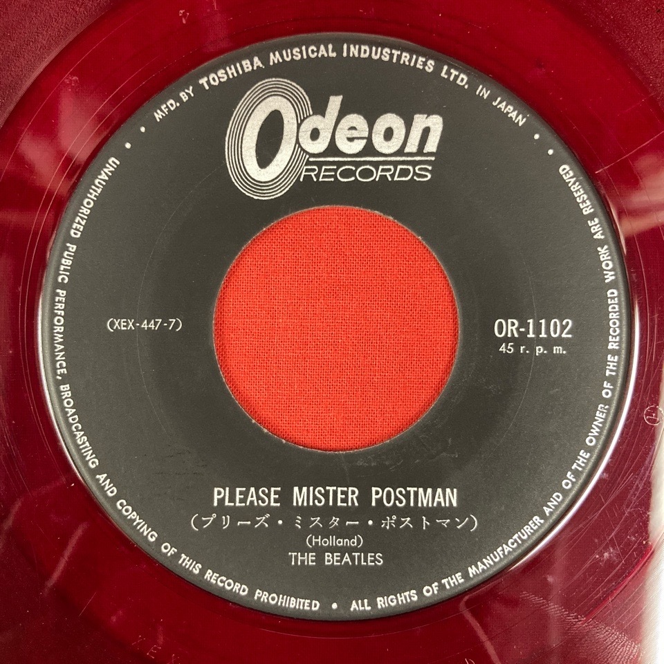 | 【アーティスト】 ビートルズ 【タイトル】 プリーズ・ミスター・ポストマン 【規格番号】 OR1102 【商品説明】 7インチシングル/赤盤/1stカバー/裏面スラックス/シャチハタあり 【状態】 EX-/EX- |