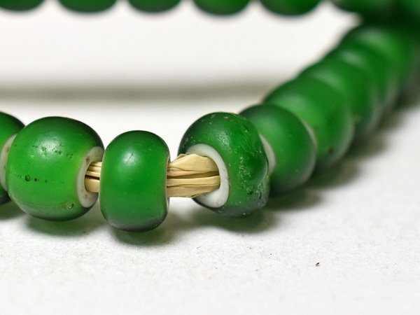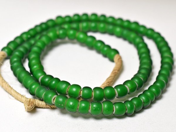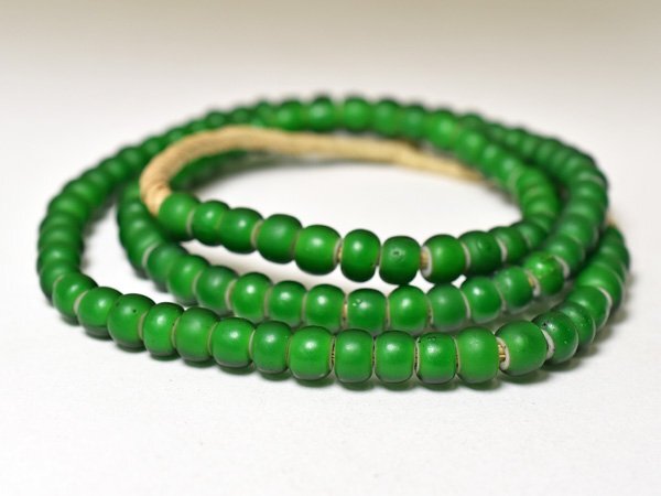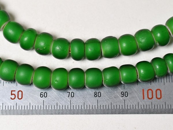 美色! ホワイトハーツ艶消し緑色扁平丸型大粒ビーズ一連(Φ8.0mm) | |||