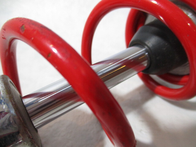 中古の社外のものです。メーカーは不明です。 全体的に多少のすれた跡や塗装はがれ、細かな傷、くすみや点サビ等がありますが、あくまで目視で全体的な曲がりは無く見えます。 ロット可動部に点サビは見当たらず、荷重をかけた場合はわからないものの、荷重をかけていない現状ではオイルのにじみは見当たりません。 カラーなどは付属しません。 パーツ入手のため把握できる現状は上記の通りです。画像のものが全てで、あくまで目視の判断です。 車種は不明です。画像をよくご確認のうえ、サイズを参考に、足回り流用の素材としても活用してください。 送料無料(北海道、沖縄県、離島の方は除く)でこの価格での落札です、お得なものだと思いますよ! b |