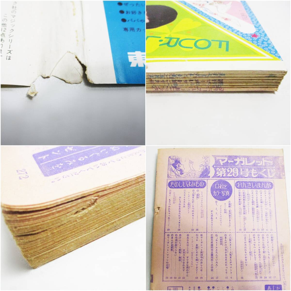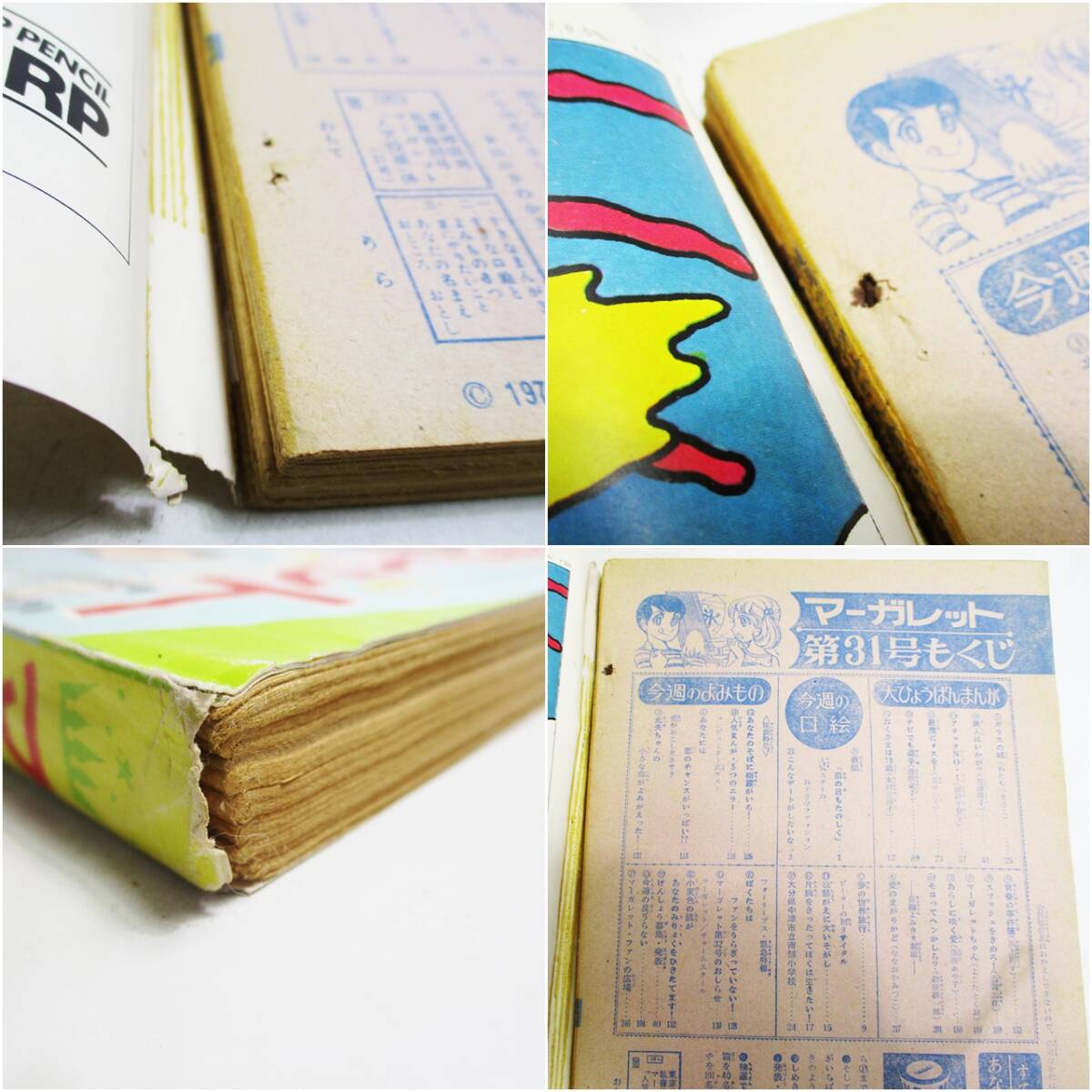 ■送料について■ 佐川急便にて全国一律、1160円になります。 ※北海道・沖縄・離島は別途送料がかかります。 ■商品特徴 ☆付属品は写真のものが全てになります☆ ■サイズ(約) 素人採寸となります。多少のズレはご了承ください。 ■商品状態 ご覧いただきありがとうございます。 1970年(昭和45年)に発行された、 週刊マーガレットと週刊少女コミックの合計3冊セットです。 当時の懐かしい漫画、ファッション、 広告などが満載の、貴重な昭和レトロな資料です。 長年の間にわたり大切に保管されてきた長期保管品です。 【セット内容】 週刊マーガレット 1970年 29号(7月19日号) 1970年 31号(8月2日号) 週刊少女コミック 1970年 16号(8月2日号) 【商品の状態】 全体的に経年劣化が激しい【状態難あり】の商品です。 あくまでコレクション、資料目的でのご入札をお願いいたします。 3冊すべてにおいて、表紙と本体のホチキス留め部分が破れたり、 本体(中身のページ)が外れているものがあります。 雑誌全体(特に背表紙やページ側面)に、強いヤケ(変色)、 シミ、茶色の汚れ、黄ばみが目立ちます。 表紙や裏表紙、ページの一部に破れ、折れ、角の欠損などが見られます。 ページの折れや、印刷インクの経年変化、ホチキスの錆びなどが考えられます。 古い古書であり、美品ではございません。 上記の状態を十分にご理解いただき、 ノークレーム・ノーリターンでお願いいたします。 現状でのお渡しとなりますことをご了承ください。 ネット販売専用の商品になりますので、店頭との併売は行っておりません。 倉庫保管品になりますので、店頭での状態確認は出来ませんので、ご了承ください。 ■商品の注意事項 画像はなるべく実物の色味に近くなるよう心がけておりますが、 照明やお使いの機器よっては色合いが異なる場合があります。ご了承くださいませ。 また,見落とし点や説明しきれないことも有るかと思います。 上記に記されていないこと等,ご不明な点についてご質問など頂けましたら, 分かる範囲で出来る限りお答えさせていただきますので,お気軽にご連絡をどうぞ! 海外発送につきましては送料は個別にお答えしておりますので 入札前に質問欄よりお問い合わせください。 ■領収書について■ 領収書の発行については商品発送後の郵送、メールでの送信は行っておりません。 商品と同梱させていただきますので、 必要な方は発送前にお知らせいただきますようお願いいたします |