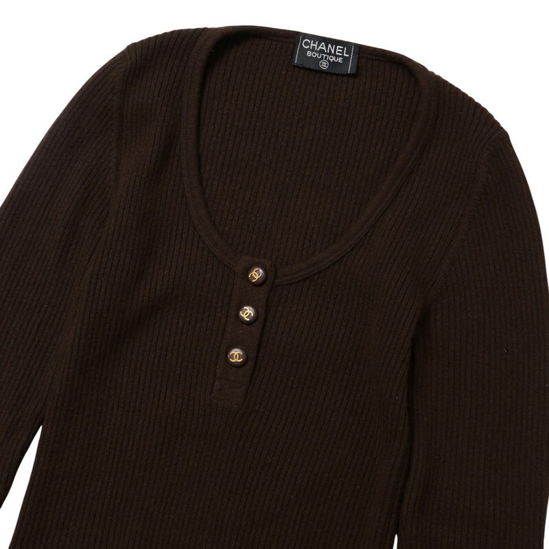 MI1983〇CHANEL シャネル*CC ココマーク釦 ヘンリーネック リブニット セーター*ブラウン | |||