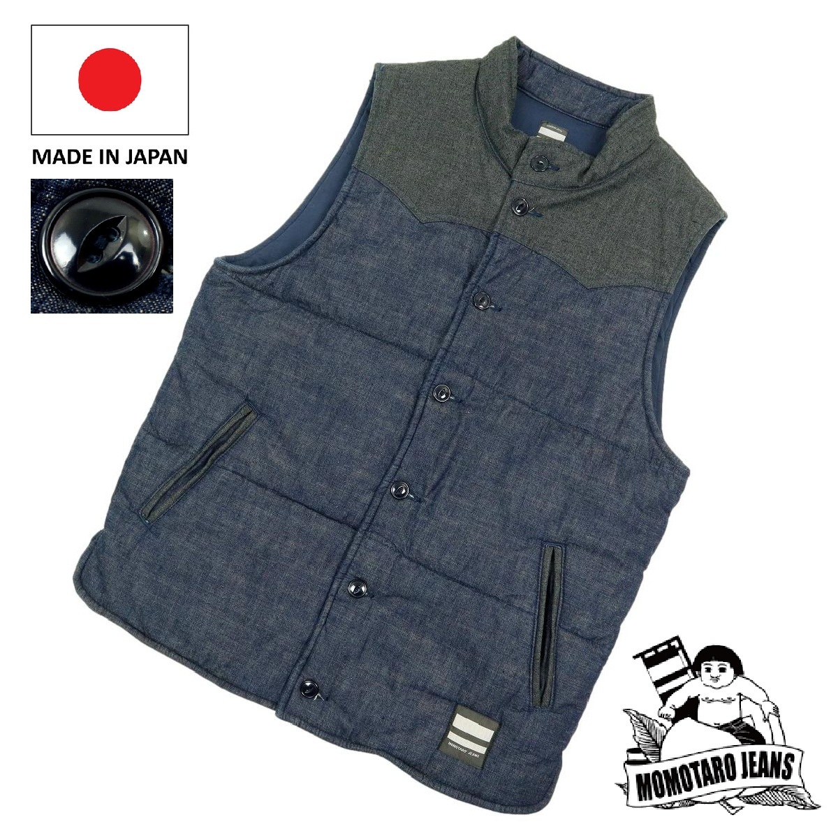 | ブランド名:MOMOTARO JEANS サイズ:42 肩幅:39cm 身幅:51cm 袖丈:-cm 着丈:66cm 裄丈:-cm 色 :ブラック×ネイビー 状態:多少使用感はございますが、比較的綺麗なお品物です(写真でご確認ください) ※状態の確認は慎重に行っておりますが、僅かな薄汚れや、キズ、糸飛びなどがある場合がございます、古着(中古品)にご理解いただける方のみ入札お願いいたします |