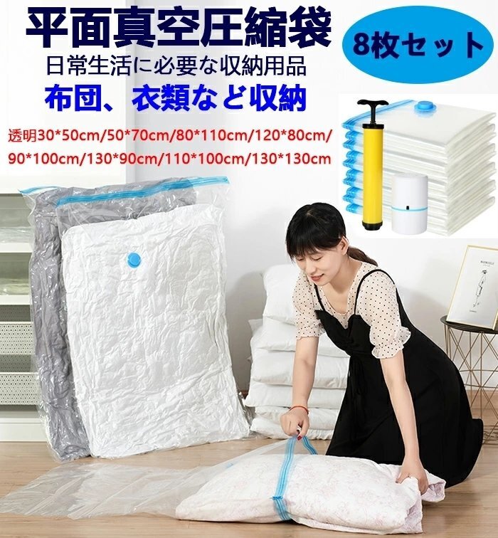 圧縮袋 衣類 布団 衣類収納袋 真空圧縮袋 衣類圧縮袋 圧縮パック 布団収納袋 透明な真空貯蔵袋 衣類収納 真空衣類収納袋 8枚セット [浏览原始页面]