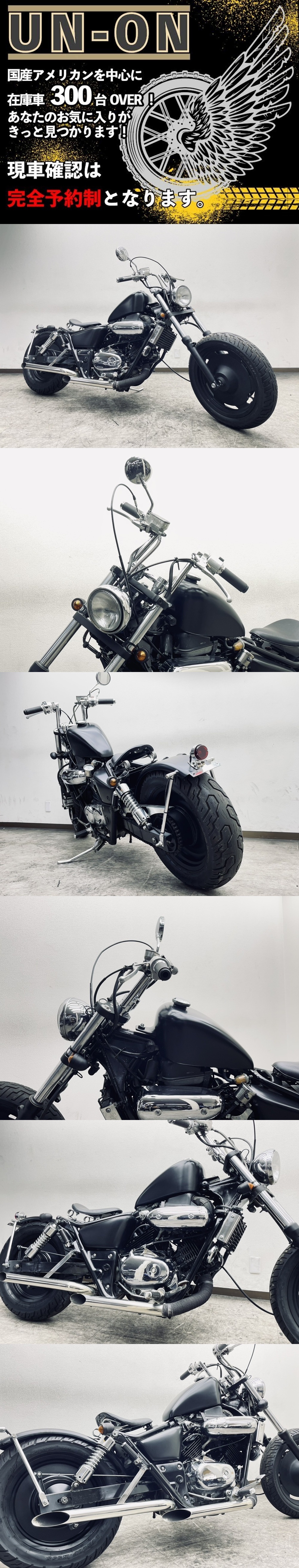 | ~~~~~~ ご注意ください ご注意ください ご注意ください ご注意ください ~~~~~~ 掲載車両は、すべて当社保管倉庫において、直接販売・卸販売をしています。 落札いただいたとしても、商談中の場合やバイクショップ様・業者様が引き上げ直後の場合もあります。 また、落札されても連絡が取れない場合や、ご入金の確認が取れない場合は、他のお客様を優先と致します。 <<<ご連絡先>>>現車確認、大歓迎です! *完全予約制です。必ず事前にご連絡ください* !!! 入札前には、必ずメールか電話にてご連絡ください !!! 電話:045-719-5355 当社HP https://sites.google.com/view/un-on/home メール:unonbike@gmail.com お気軽にご連絡ください お問い合わせの際は マグナ250S 管理番号 473 でお願いします! セルにてエンジン始動、アイドリング、吹け上がりともに良好です。 取り扱い車両はすべて中古車・現状引き渡しとなります。 ご入札前には、出来る限り「現車確認」もしくは「お電話」「メール」にてご連絡をお願いします。 車輌状態を説明させていただきます。 【社外パーツについて】 本車両に付属している社外パーツにつきましては、出品前に動作確認は行っておりますが、中古品のため万が一不具合等があった場合でも 保証は致しかねますので予めご了承の上、ご検討くださいますようお願い致します。 電話番号:045-719-5355 メール:unonbike@gmail.com 残念ながら、事前のご連絡がない場合、「誤入札」「誤落札」が多い為、入札・落札を取り消す事もありますので、 予めご了承ください。 >>>>>>>>>>>>>>>>>>>>>>>>>>>>>>>>>>>>>>>>>>>> 当店は業者販売・現状引き渡し専門店になります。 一般のお客様にも、業者価格にて販売しています。 基本的には整備料も頂かず現状販売の形となりますので、ご購入後は「点検・整備・メンテナンス」を行ってからご使用ください。 現車確認・業者販売 大歓迎!! 国産アメリカン中心に 常時 300台前後の車両在庫があります! 現車確認、大歓迎です。 車両引き渡しについては、『自賠責保険加入』『予備車検取得』『登録・届出代行(ナンバー登録)』を完了してからになります。 『登録・届出代行費用』は、横浜登録 手数料 20000円 (税別) 横浜登録以外の管轄外 手数料 30000円(税別)となります。 『予備車検取得』については、エンジンサイズや搭載マフラー等によって変わってきますので、まずはお問い合わせください。 走行距離は、メーター表示距離となります。 配送につきましては、当社にて契約している陸送会社様 3社の中から最安を選択して手配いたします。 配送費用については、納車先住所によって異なりますので、お問い合わせください。 デポ持ち込みに関しては7000円(税別)で行います。 なお、落札後のキャンセルは受け付けておりません。ご不明点等がありましたら、必ず入札・落札前にお問い合わせください。 落札後のキャンセルについては、即決価格の10%のキャンセル費用が発生いたしますので、予めご了承ください。 <<<<<<<<<<<<<<<<<<<<<<<<<<<<<<<<<<<<<<<<<<<< 電話 : 045-719-5355 メール:unonbike@gmail.com 現車確認は業者オークションで不在時が多い為 完全予約制です ~~~~~~~~~~~~~~~~~~~~~~~~~~~~~~~~~~~~~~~~~~~~~~~~ 取り扱い車両はすべて中古車・現状引き渡しとなります。 ご入札前には、出来る限り「現車確認」もしくは「お電話」「メール」にてご連絡をお願いします。 車輌状態を説明させていただきます。 電話番号:045-719-5355 メール:unonbike@gmail.com 残念ながら、事前のご連絡がない場合、「誤入札」「誤落札」が多い為、入札・落札を取り消す事もありますので、 予めご了承ください。 >>>>>>>>>>>>>>>>>>>>>>>>>>>>>>>>>>>>>>>>>>>> 当店は業者販売・現状引き渡し専門店になります。 一般のお客様にも、業者価格にて販売しています。 基本的には整備料も頂かず現状販売の形となりますので、ご購入後は「点検・整備・メンテナンス」を行ってからご使用ください。 車両引き渡しについては、『自賠責保険加入』『予備車検取得』『登録・届出代行(ナンバー登録)』を完了してからになります。 『登録・届出代行費用』は、横浜登録 手数料 20000円 (税別) 横浜登録以外の管轄外 手数料 30000円(税別)となります。 『予備車検取得』については、エンジンサイズや搭載マフラー等によって変わってきますので、まずはお問い合わせください。 走行距離は、メーター表示距離となります。 配送につきましては、当社にて契約している陸送会社様 3社の中から最安を選択して手配いたします。 配送費用については、納車先住所によって異なりますので、お問い合わせください。 デポ持ち込みに関しては7000円(税別)で行います。 なお、落札後のキャンセルは受け付けておりません。ご不明点等がありましたら、必ず入札・落札前にお問い合わせください。 落札後のキャンセルについては、即決価格の10%のキャンセル費用が発生いたしますので、予めご了承ください。 <<<<<<<<<<<<<<<<<<<<<<<<<<<<<<<<<<<<<<<<<<<< |