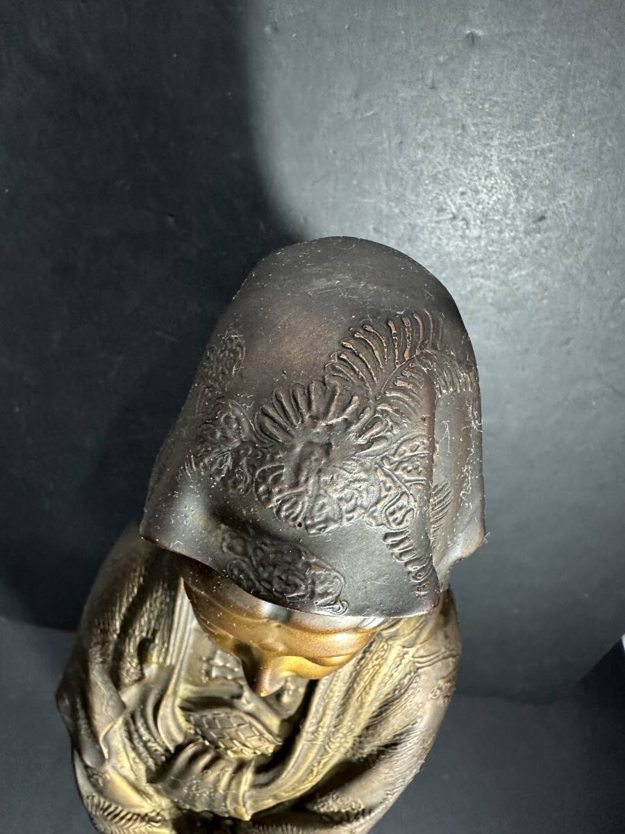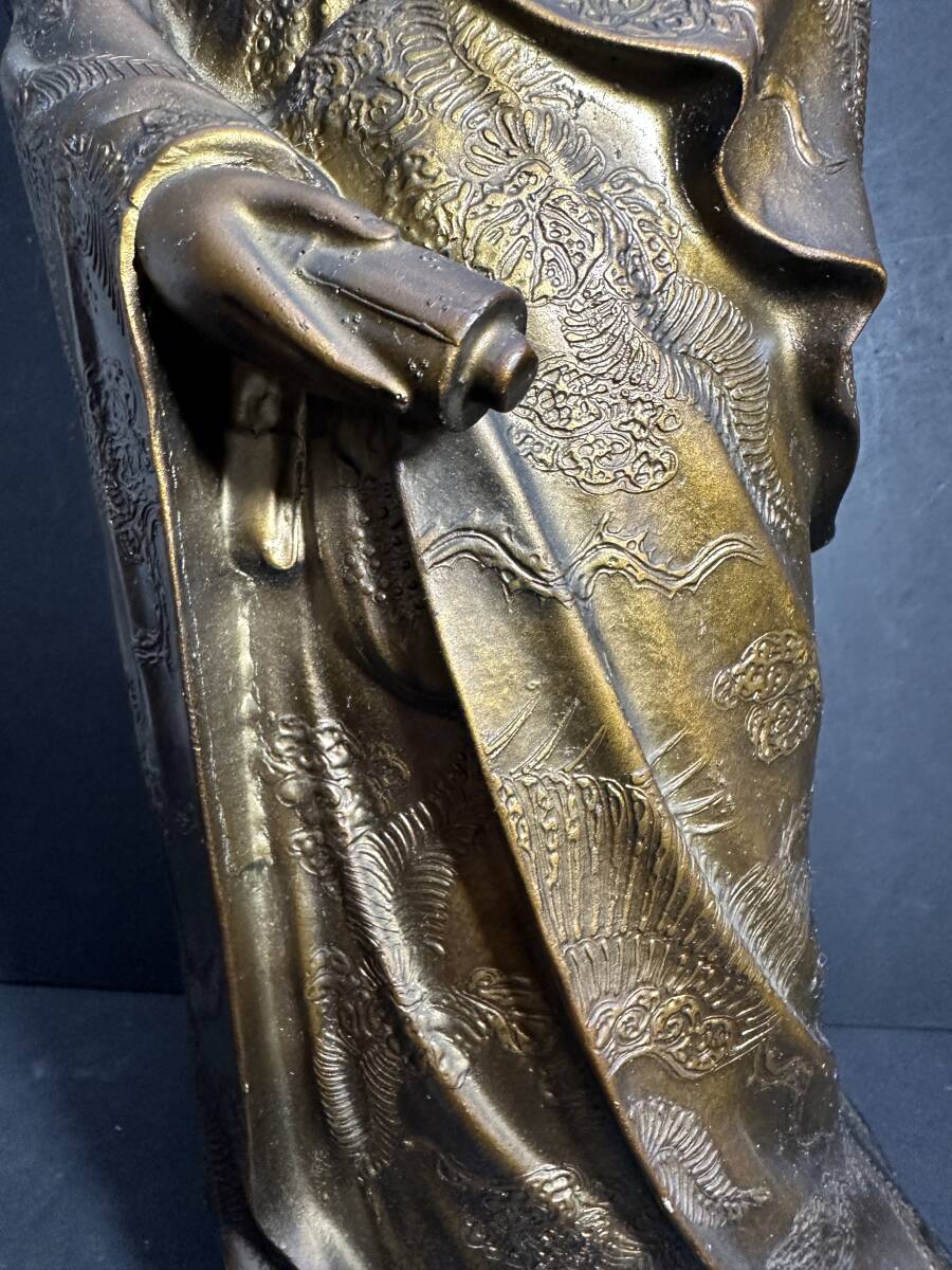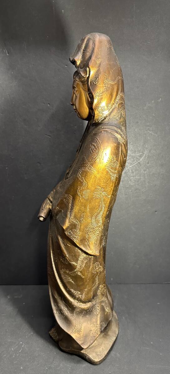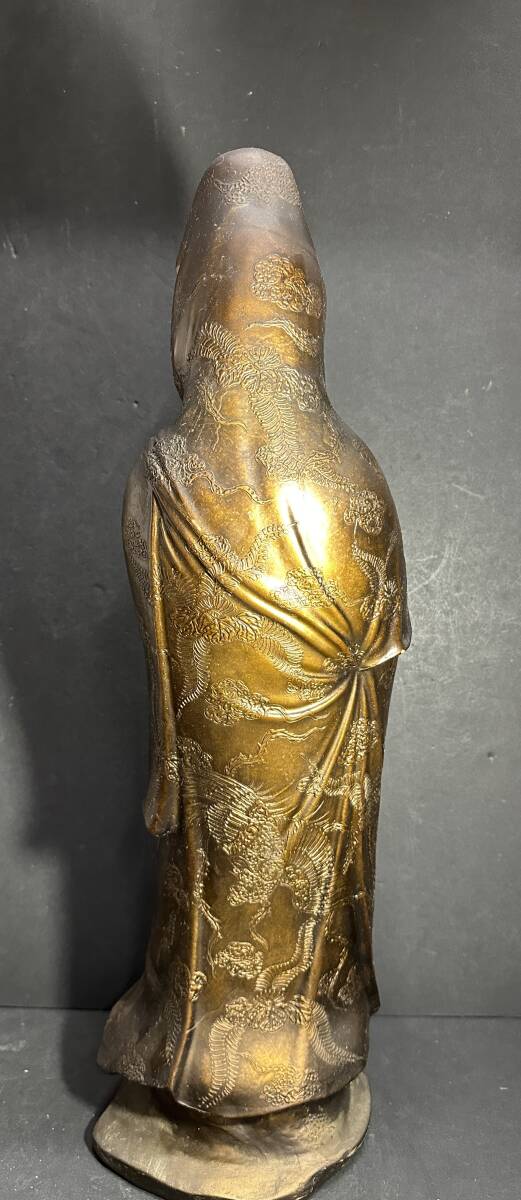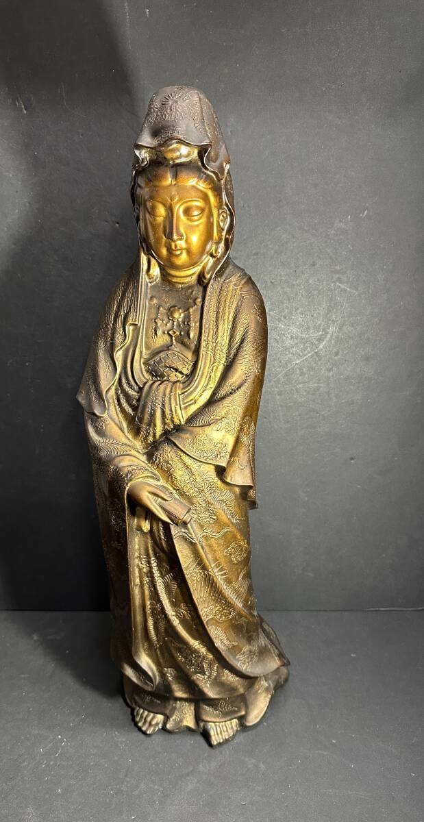 サイズ (約):全長 62㎝/重さ 16.3㎏ カラー:ブロンズ他 ※その他の詳細は写真にてご確認くださいませ。 ビンテージ感とデザイン性満載の金属工芸 銅製? 観音菩薩像 観音様 置物 大型 オブジェ 縁起物 全長62㎝ 約16㎏で、ご利用やコレクション等におすすめの一品です。 |