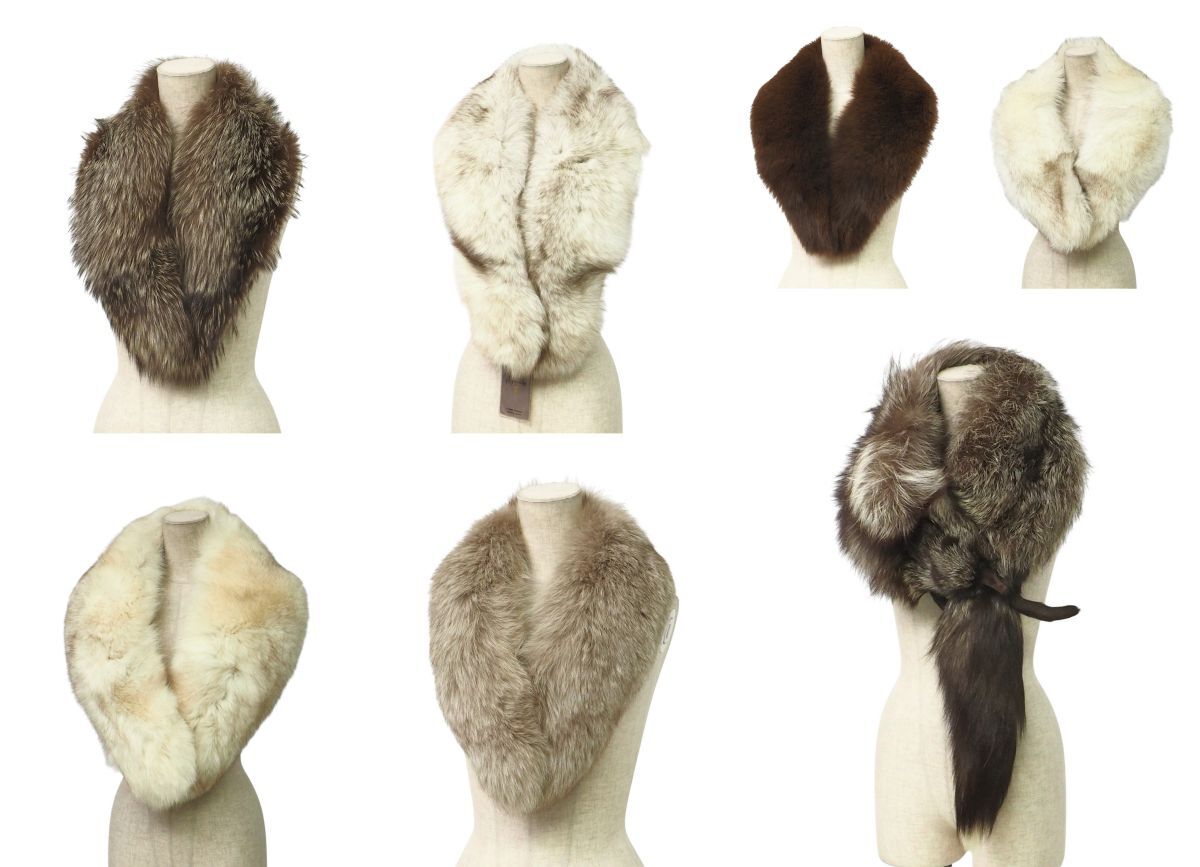 | GS4726▽《まとめ売り 7点セット》SAGA FOX サガ フォックス 含む*本毛皮 リアルファー 顔 脚 尻尾付き×1 ティペット ストール ショール | |||