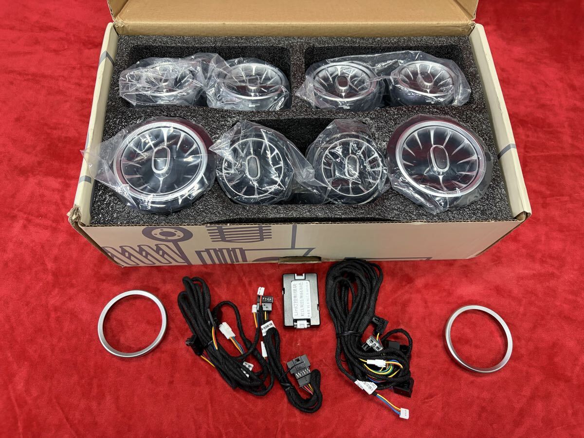 ベンツ Eクラス W213 64色アンビエントエアコンルーバー 前後セット 2017年式ベンツEクラスに付けようと思い購入しましたが不要になりました。 写真撮影のために開封した程度で未使用の品物です。 W213全年式対応のようです。 説明書は付属しておりませんでしたが、YOUTUBE等に多数の取付説明動画がありますので、そちらを参考して下さい。 |