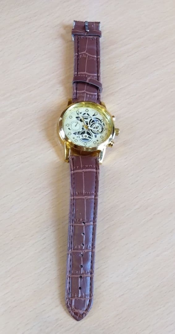 スケルトンデザインのゴールドとブラウンのクォーツ腕時計。| 出价者 | 信用 | 价格 | 时间 |