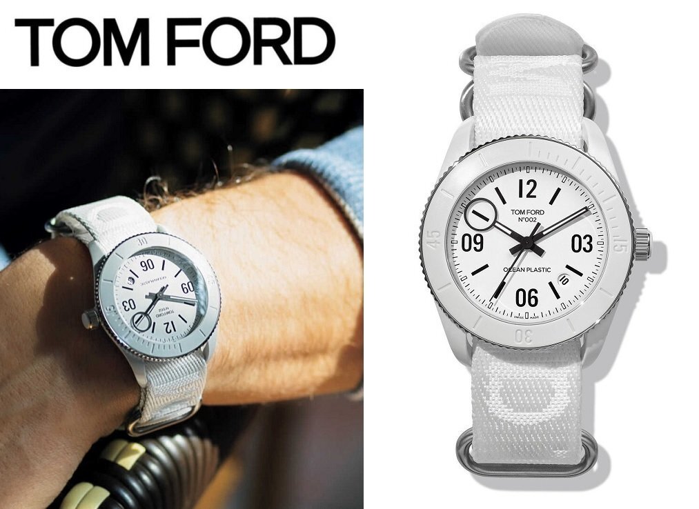 35万新品◆TOMFORD トムフォード 自動巻腕時計 OCEAN PLASTIC SPORT N.002 ホワイトダイヤル テキスタイルベルト白