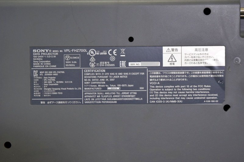 SONY/ソニー 7000lm レーザー光源データプロジェクター□VPL-FHZ700L ランプ使用4058時間 中古 | |||