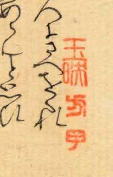 「関屋の巻」原本の奥扉(原本番号6-A)の印は、仙台藩第五代藩主・伊達吉村の正室・伊達貞子の押印