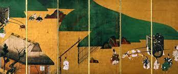 下記写真は、国宝「源氏物語」絵巻のうち「関屋の巻」屏風絵(静嘉堂文庫美術館所蔵)