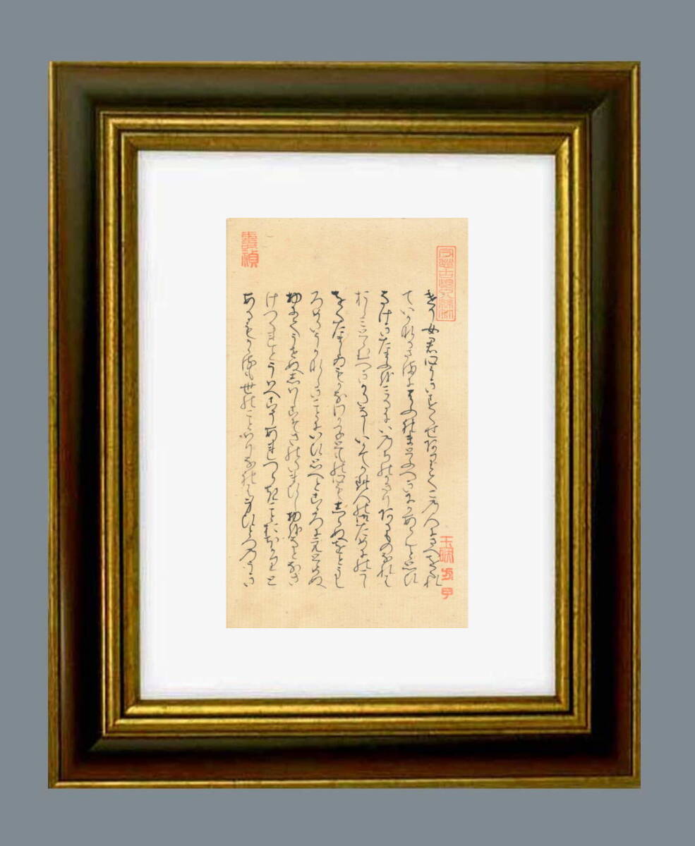 「源氏物語」自筆の大きさ タテ21.8センチ ヨコ12.8センチ。額縁の大きさは タテ37.0センチ ヨコ28.0センチです。額縁は新品です。