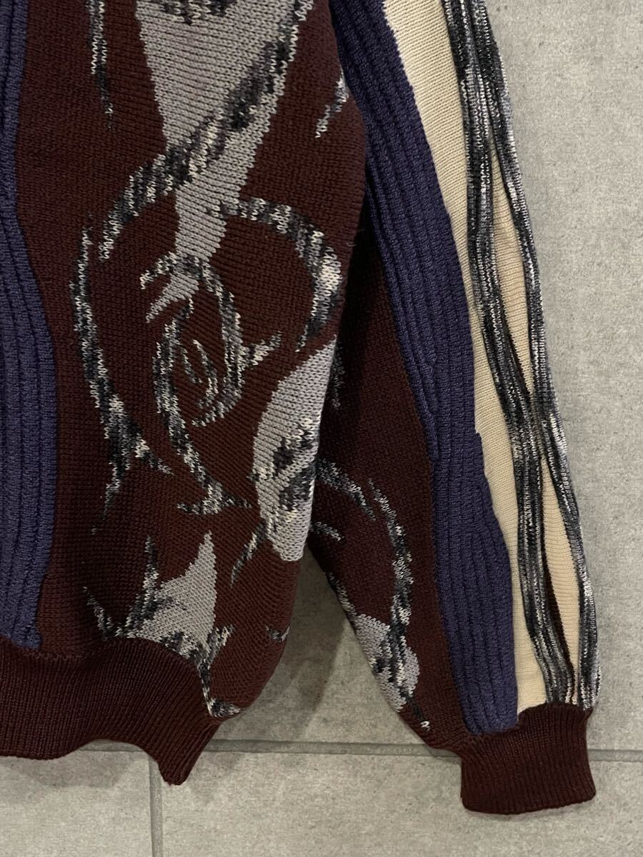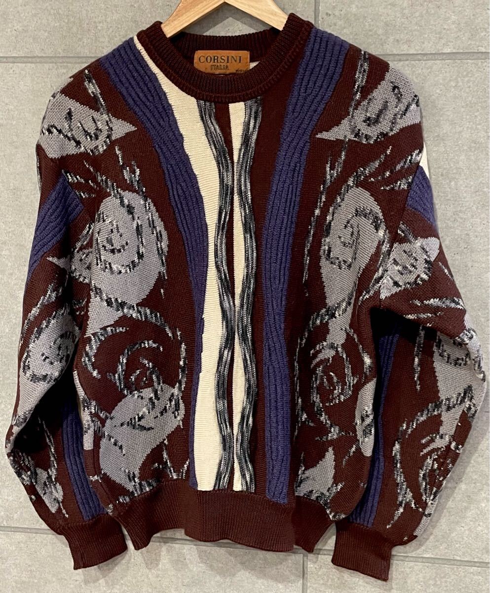 秋冬に! 90s 日本製 CORSINI コルシーニ 3D 立体編み ウール混ニットセーター ボルドー系 Mサイズ メンズ ヴィンテージ 送料込 新規×