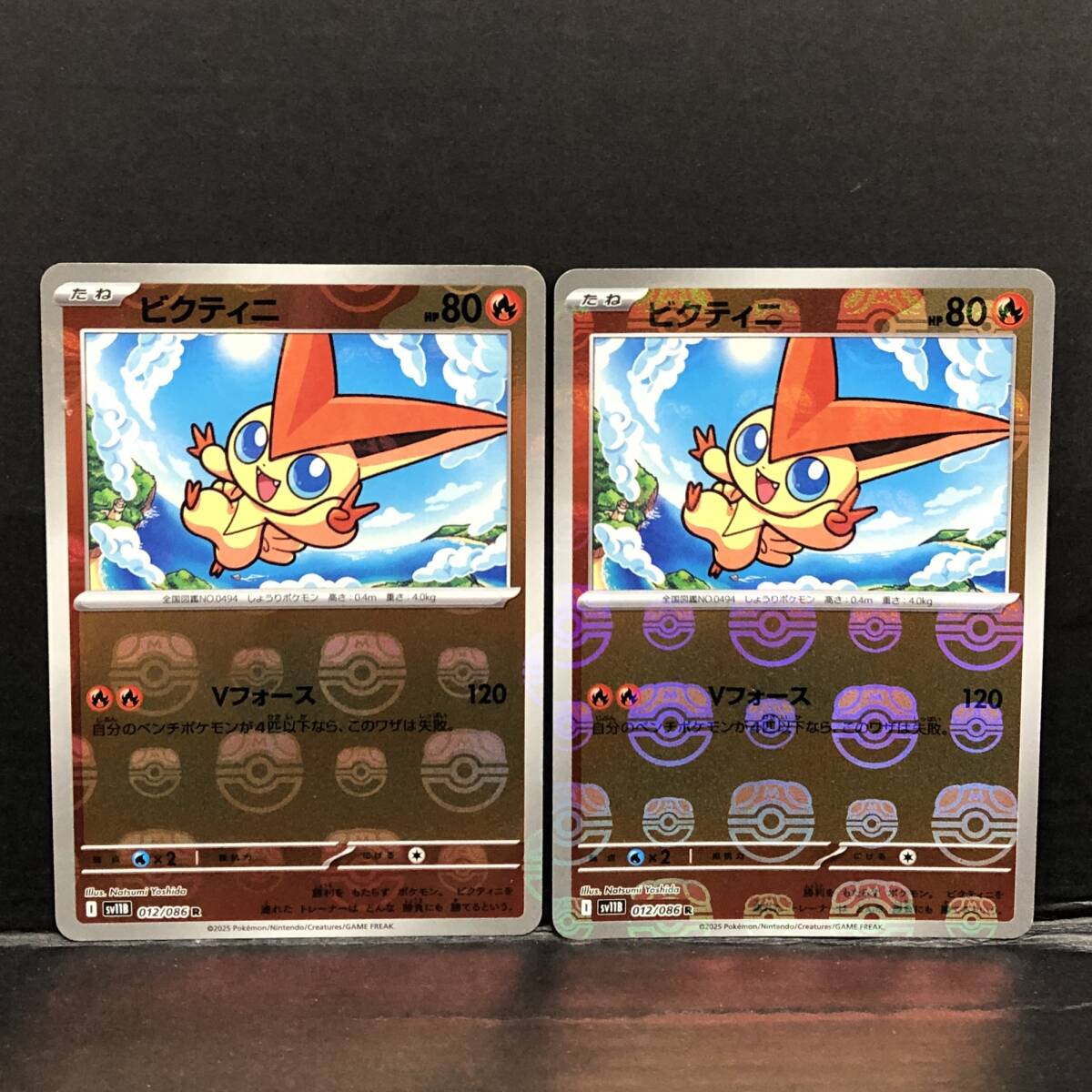 【 商品名 】 ビクティニ マスターボールミラー R 012/086 SV11B 2枚セット ポケモンカードゲーム 【中古】 【 コンディション 】 キズやカケ等のフチ傷みが見受けられますので予めご了承ください。 素人による検品ですので見落としはご容赦くださいますようお願い致します。 プレイ用としてお考えください。 画像にあるものが全てとなります。 【 発送について 】 ネコポスでの発送となります。 出品時の設定ミスにより、選択できない場合がございますので その際は取引ナビにてお知らせ下さい。 封筒でのポスト投函となります。 ※その他の発送方法には対応できません。落札後に指定されても対応致しかねます。 手渡し、引取などにも対応致しかねます。ご承知の上でご参加下さい。