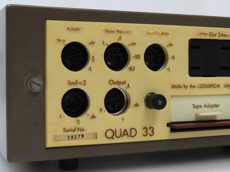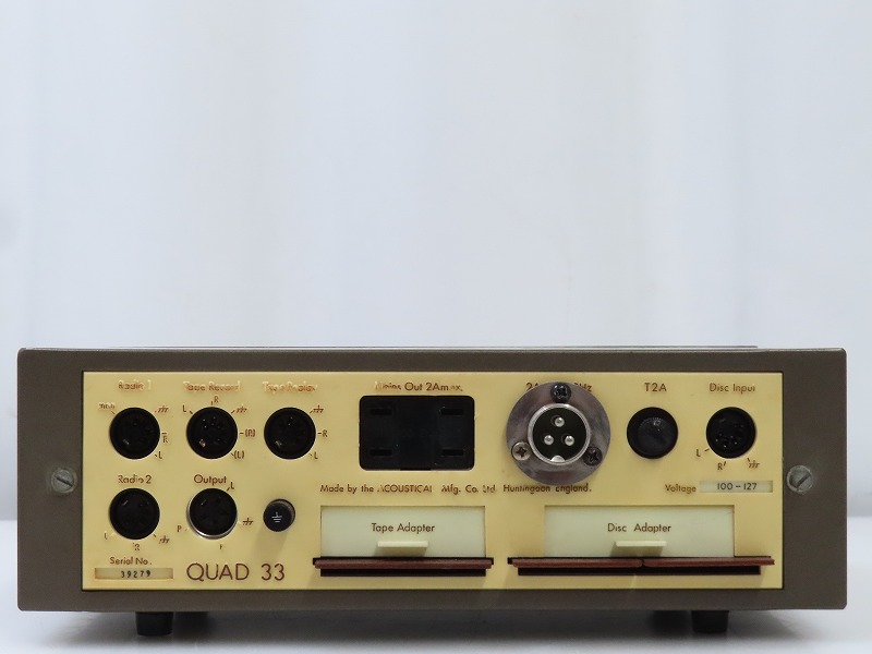 ■メーカー : QUAD ■型番 : 33 ■外径寸法 : W260×H83×D165mm ■重量 : 3kg ※QUAD 303 パワーアンプも同時出品しております。 【商品の状態 当店での確認内容】 当店では動作環境がない為未確認となります。 ※上記により【現状商品】としての出品となります。 「商品の状態」に関しましては当方主観の目安となります。外観などは中古品で個人差もありますので詳細は画像にてご判断ください。 画像にて不明な点はご質問下さい。 出品商品は画像のものですべてになります。画像に写っているもの以外は付属いたしません。 ※注意※ のシステム上、送料表記が送料未定となっておりますが、送料に関しては全て有償となりますので下記を参照下さい。 【送料 全国一律 1,580 円 沖縄、離島は別途お見積り】 ※送料がお得になるサービスです(下取りシステムのご案内です) ストア決済利用時にクレジットカードやPayPay残高/PayPayクレジットを利用の方は留意点がございますのでこちらを参照上ご利用ください。 当ストアでは商品を安全にお届け出来るよう提携運送会社と協議の上、発泡緩衝材や強度段ボールの使用等 運送会社が指定する梱包方法や資材を採用しております。 より安全にお届け出来るよう商品仕様により梱包サイズが大きくなる場合や個口数が増える事がございます。 【当ストアオークションルールを入札前に必ずご確認ください。】 【落札後の取引手順】 ・落札後は取引ナビにて、必要事項をご入力後、送信ください。 取引終了後48時間(土、日は除く)以内に入力をお願い致します。 ※ご連絡が頂けない場合は落札者様都合でのキャンセルとさせていただきます。 ・落札代金(商品代金+消費税+送料)の入金をお願い致します。 ※大型商品の場合は送料確定後の決済となる為取引ナビを入力頂き、当ストアより送料のご案内が来るまでお待ちください。(土曜、日曜、祝日の場合は翌営業日より順次ご案内いたします) ・お支払い方法はクレジットカード/PayPay残高/PayPayクレジット/PayPay銀行/ゆうちょ銀行のみです。 ※商品代金引換(代引き)のお取り扱いはしておりません。 ※領収証の発行が必要な方はご連絡ください。 ※銀行振込の際の振込手数料はご負担願います。 ・入金確認後に出荷手配を致します。 (原則入金確認後3営業日以内に発送いたしますが、大型や重量のある製品はお時間をいただく場合もございます。) ・発送は当店指定の運送会社の元払いのみでの発送となります。 ※他の運送会社、送料代引き等は致しかねます。 ※落札者様ご自身での運送会社の手配いただく事も可能ですが荷物事故の責任の所在の問題上、梱包は致しかねます。 ※店頭にお越し頂き手渡しも可能(福岡市早良区)です。ご希望の方はご落札後にご連絡下さい。 ・大型/重量物商品の送料につきましては商品の特性上、荷降ろし状況等により送料が大きく前後し運送業者に別途見積りが必要な為、早めのお問い合わせにてお見積り上、入札をお願い致します。 【初期不良の保証について】 ・商品到着後の初期動作不良、また配送中の事故による破損、不具合が有る場合は、商品発送後10日以内に当ストアまでご連絡ください。当ストアでは修理での対応を優先させて頂きますが、修理不可の場合は全額返金させて頂きます。 (商品代金+消費税+送料のお支払い頂いた金額となります) 【初期不良の保証の対象外について】 次の場合は保証の対象外となりますのご留意ください ・ジャンク商品、現状商品、難あり商品での出品商品。 ※難あり商品に関しましては動作確認時に一部動作不良が確認された商品になり、記載している動作確認以外にも、動作不良がある可能性もございます。こちらに関しましても保証対象外となりますことをご理解ください。 ・年代物のオーディオなどで、当店にてわからない範囲で部品が交換されている場合 ・楽器類の特殊機材(マイクロスコープ等)での確認までは行っておりません。気になる方は事前にご質問いただくか、入札をお控えください。 ※初期不良に関しましては【商品の状態】に記載のもの、またそれによって起因する動作不良は対象外です。 ※商品発送後10日を過ぎてのご連絡は対応が出来ませんので、商品が到着しましたらお早めに確認をお願い致します。 【メーカー保証の加入・継承】 ・未使用品、展示品やメーカー保証期間が残っている商品に関しまして、メーカー保証の加入、継承が必要な方は、落札後取引ナビ内にて当ストアにお知らせください。商品発送までにご連絡いただけない場合、メーカー保証の手続きを承れない場合があります。 【評価について】 ・評価不要の場合、必ず取引ナビの「要望欄」にてお知らせください。それ以外でご連絡をいただいた場合、対応できない可能性がございます。一度行った評価はシステム上取り消しが行えませんのでご了承ください。 【入札削除・キャンセルについて】 ・入札後はトラブル防止の為いかなる事情がおきましても入札を削